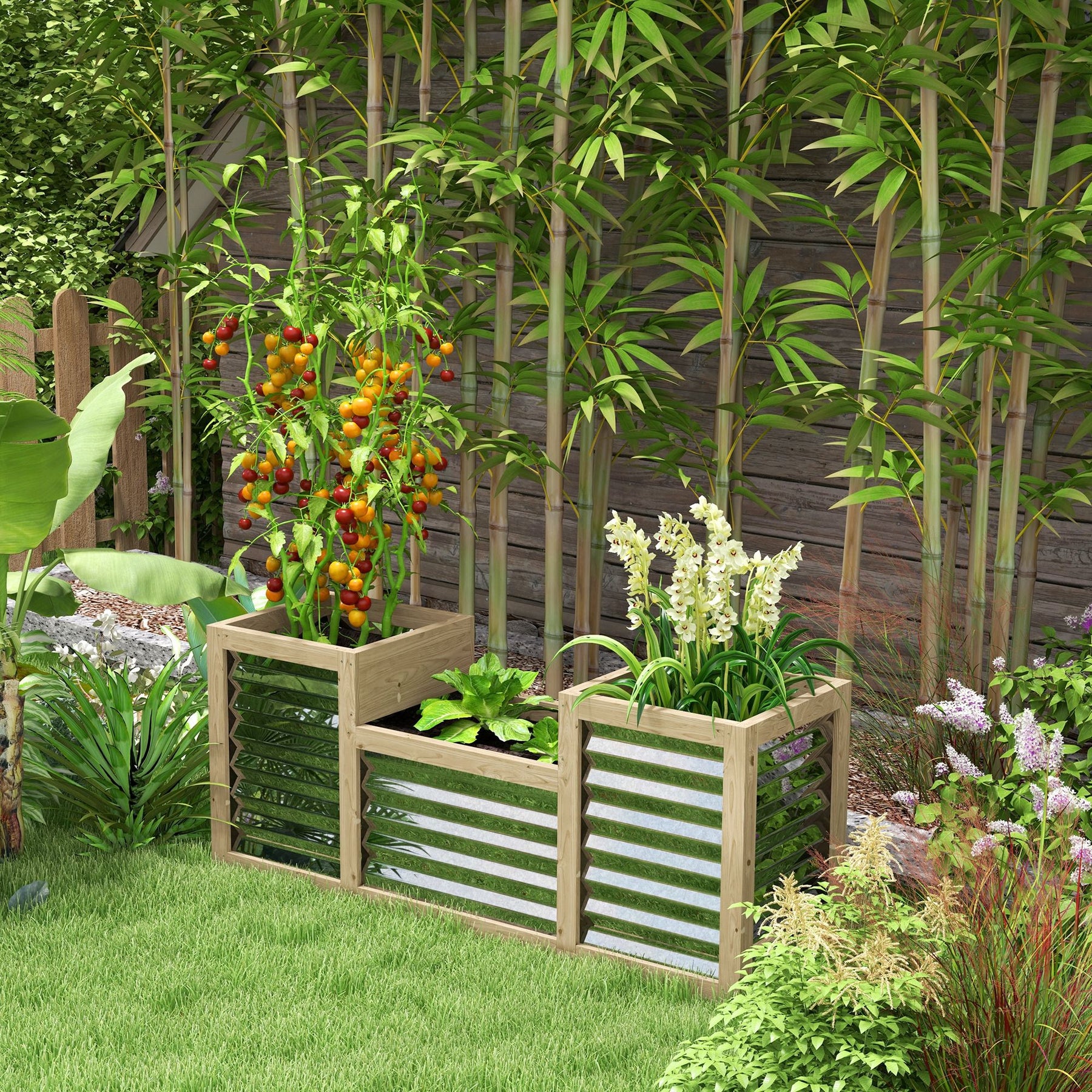 Outsunny Metal Wood Planter Raised Garden Bed: For Outdoor Flowers, Herbs & Vegetable Gardening