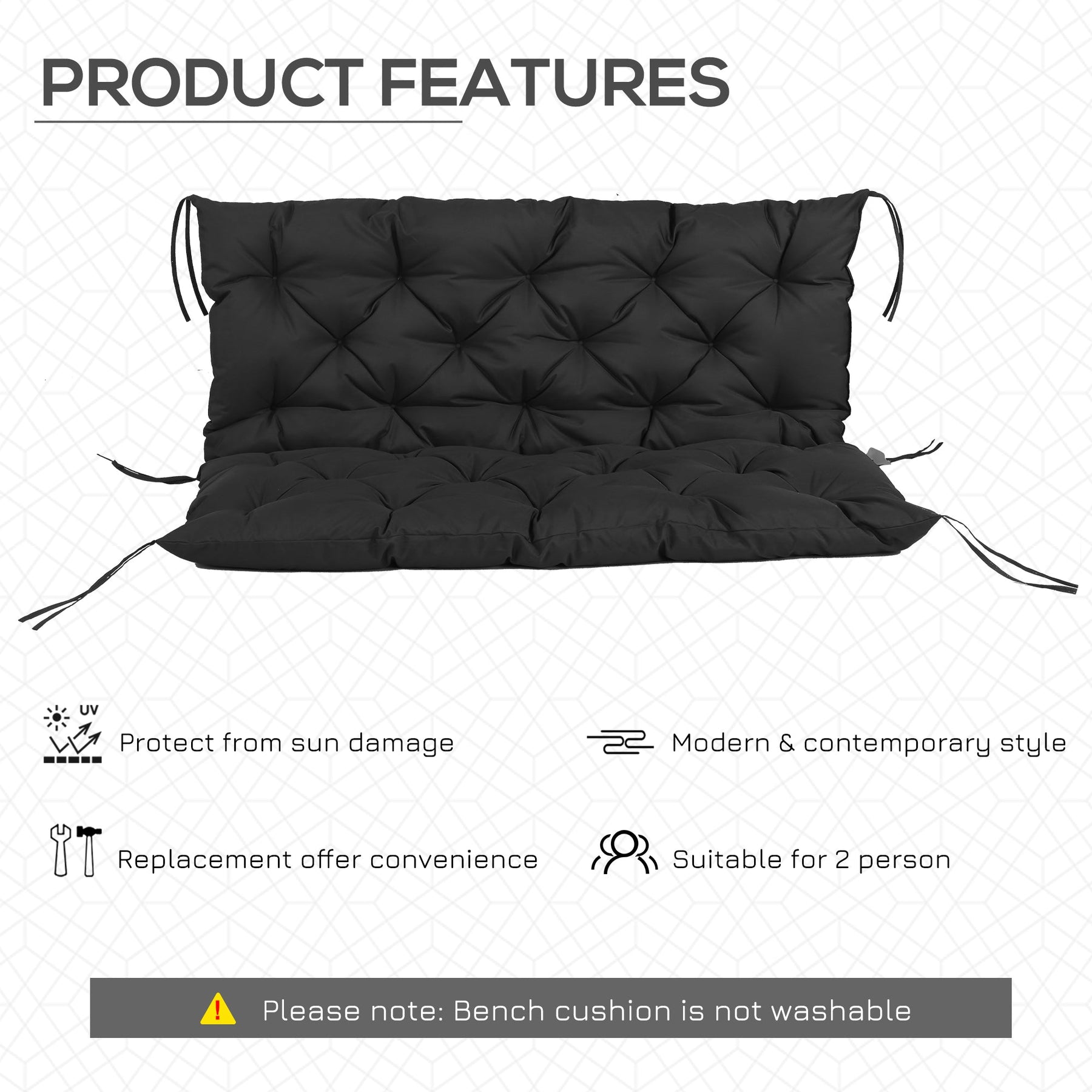 Outsunny Outdoor 2 Seater Bench Cushion 4.7 Inch Thick with Backrest Non Slip Patio Soft Pad Black