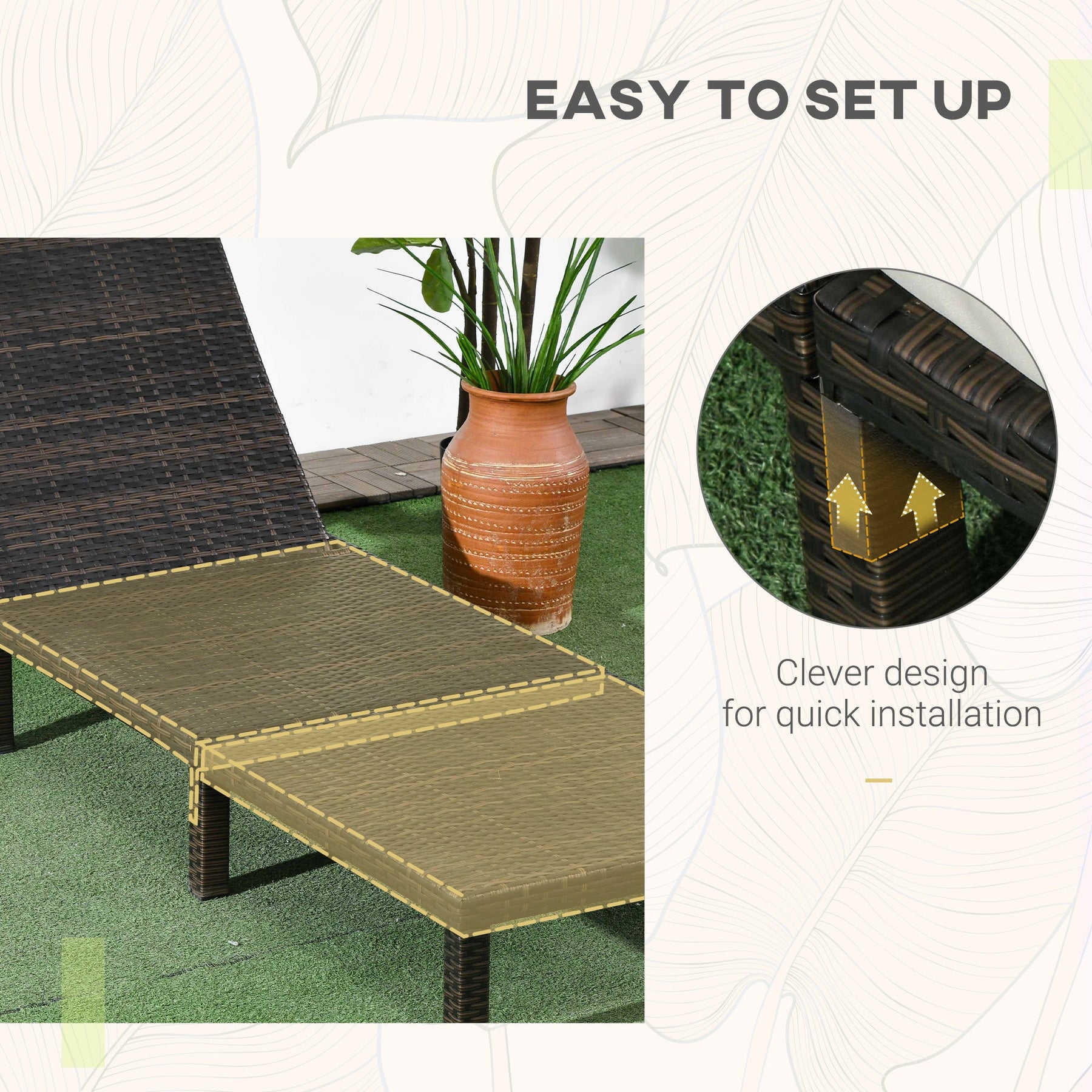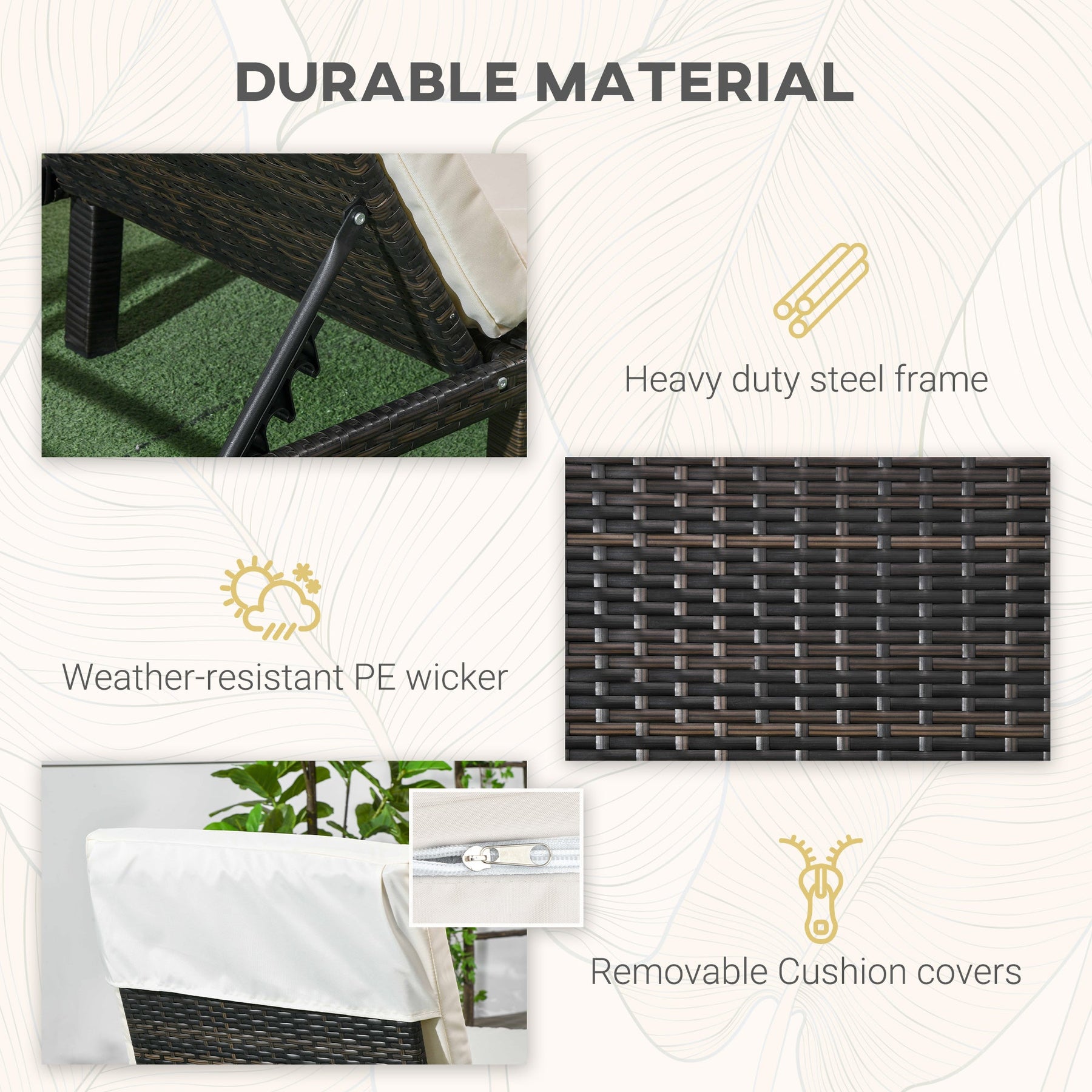 • Weather-resistant PE rattan woven over powder-coated galvanized steel frame for long-term durability