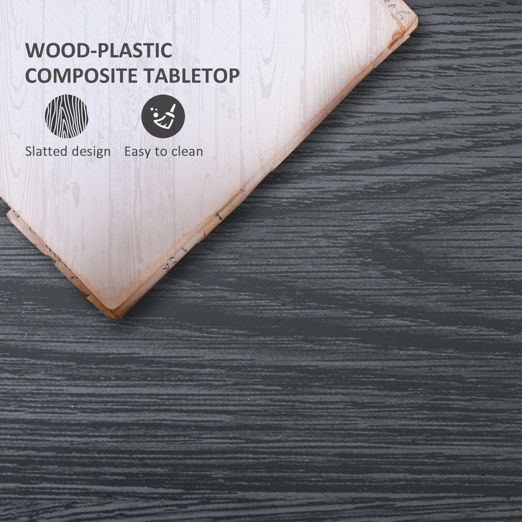 Stylish woodgrain glass tabletop adds elegance and a modern touch