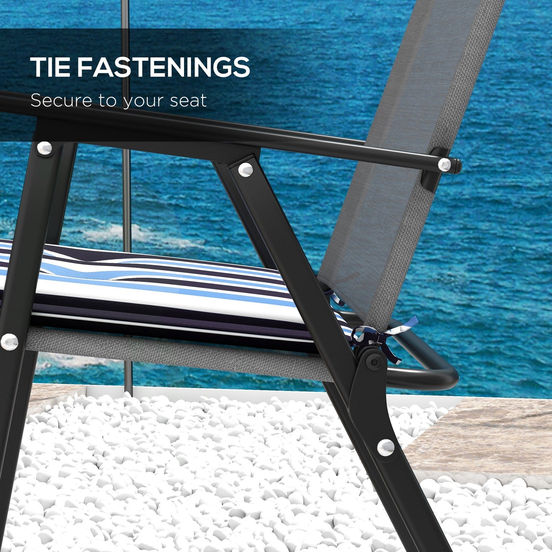 Built-in ties to keep the cushions securely in place and prevent slipping