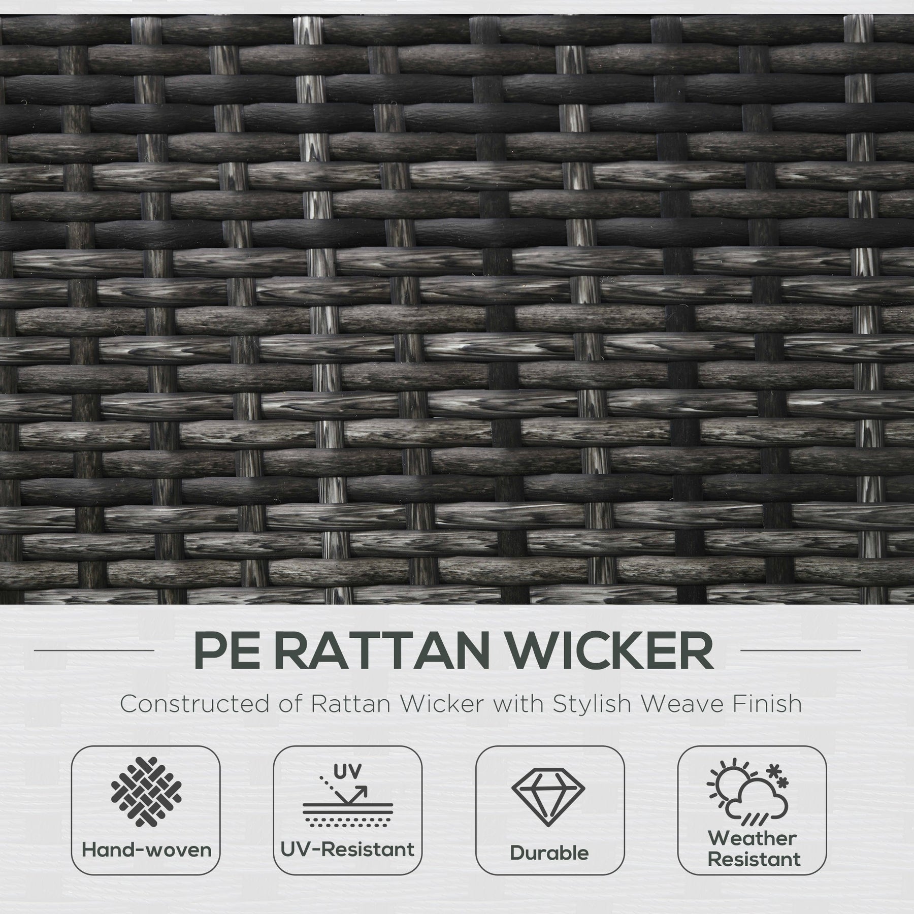 PE wicker exterior offers weather resistance and fade protection.