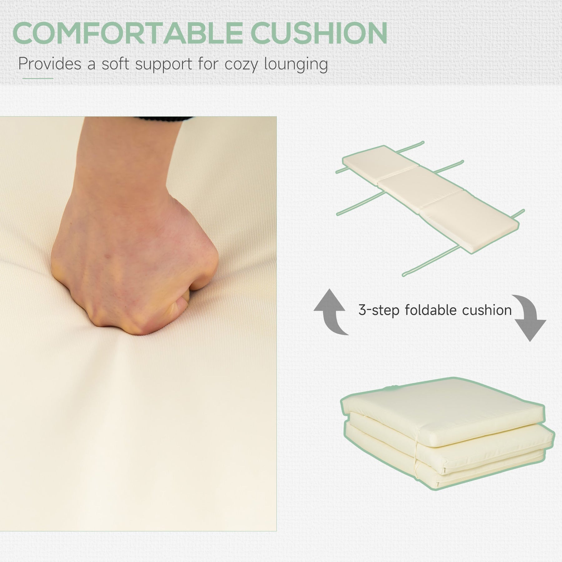 Enjoy ultimate relaxation with this adjustable outdoor chaise lounge, perfect for poolside lounging, beach outings, or camping trips. The backrest features four reclining positions (11.75", 26", 29.25", and 32" from the ground), allowing you to find the perfect angle for sunbathing, reading, or unwinding. Designed for maximum comfort, the lounge chair is fully covered with a soft padded seat cushion, which is secured with tie fastenings to prevent slipping. Built with a strong and durable wooden frame, this outdoor lounger withstands daily use and various weather conditions. Its compact folding design makes transportation and storage effortless—easily fit it into your car trunk or carry it along for your next outdoor adventure. With an overall dimension of 76.75" L x 23.25" W x 11.75" H when fully reclined and a folded size of 28" L x 23.25" W x 11" H, this chaise lounge offers both comfort and convenience. No assembly required, so you can start relaxing right away.