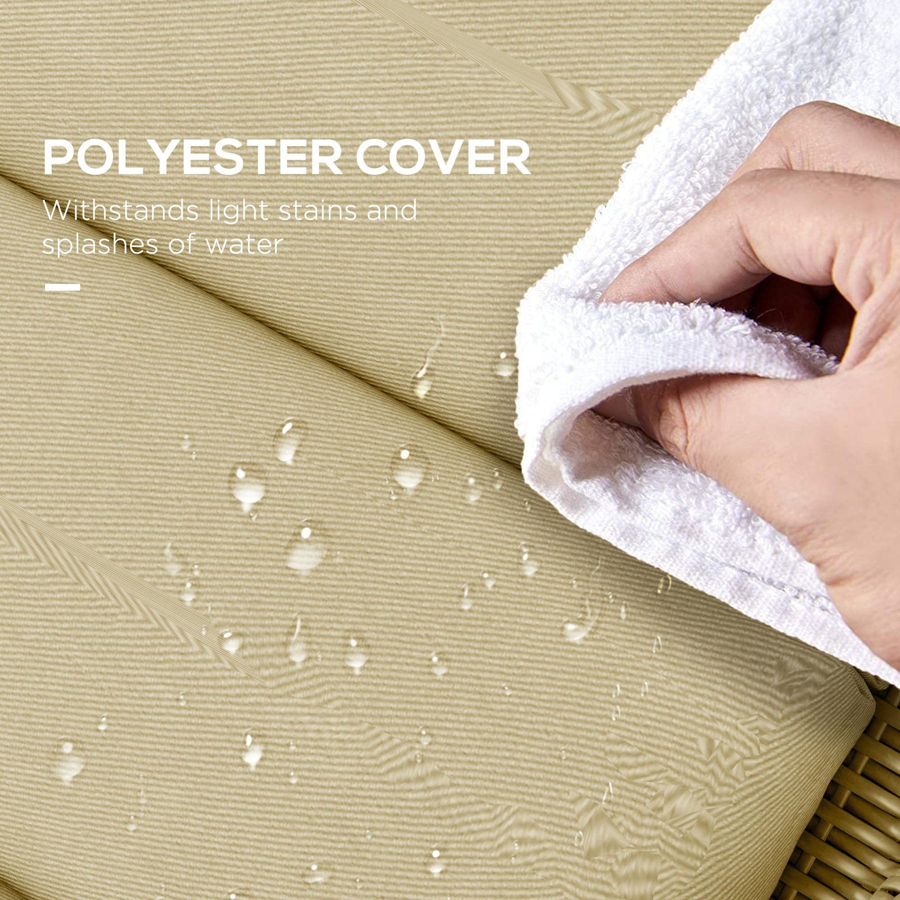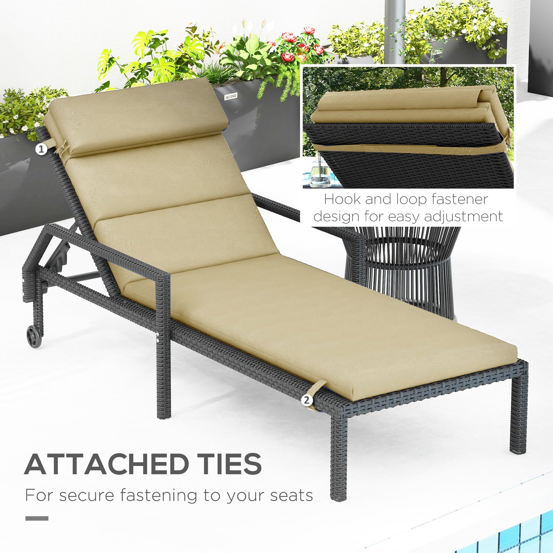 Transform your outdoor relaxation experience with this plush chaise lounge cushion, designed to enhance comfort and style. Whether you're replacing an old cushion or adding extra padding to a new setup, this cushion provides a luxurious sitting space. Featuring a built-in headrest for added neck and head support, it is filled with a high-resilience blend of materials to ensure both softness and durability. The cushion quickly returns to its original shape after use, maintaining its comfort over time. Its polyester cover offers a soft, smooth texture while being tough enough for both indoor and outdoor use. Resistant to light stains and water splashes, it can be easily wiped clean with a damp cloth for quick maintenance. To keep it securely in place, the cushion includes fixing ties and a hook-and-loop fastener design, making it adaptable to chaise lounges with widths ranging from 23.6" to 25.6" (60-65 cm).