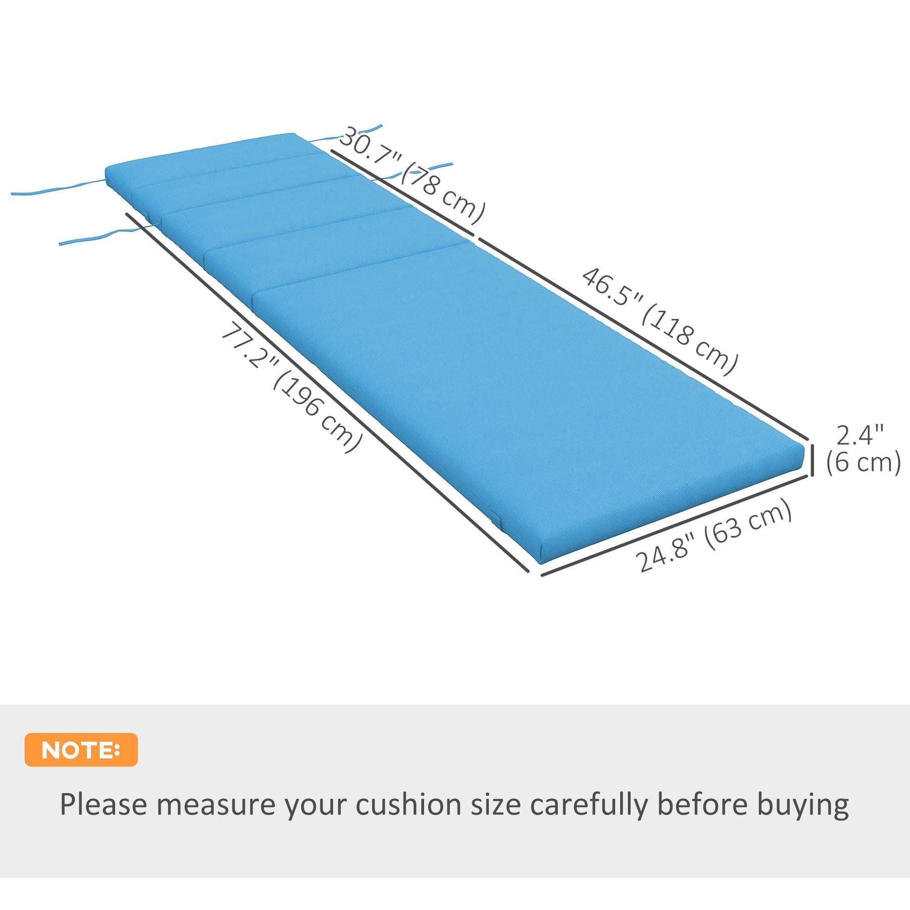Overall dimensions: 77.2" L x 24.8" W (196 x 63 cm), with a thickness of 2.4" (6 cm)