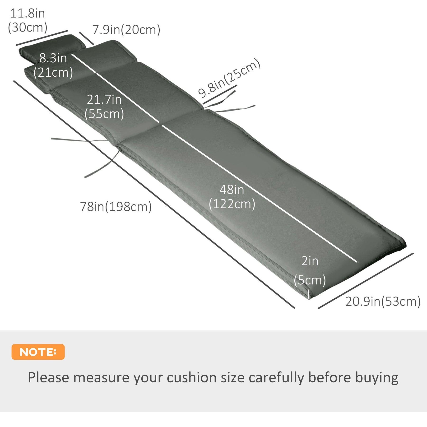 Add comfort and elegance to your outdoor lounging experience with this premium outdoor bench cushion. Crafted with a breathable polyester cover and high-density filling, this cushion offers superior softness and support, making it ideal for long hours of relaxation in your garden, on your patio, or by the pool. Four side ties ensure the cushion stays securely in place, even on breezy days, while the removable head pillow enhances your comfort with added neck and head support—perfect for sunbathing or afternoon naps. The double-stitched construction provides added durability and strength, reinforced with piped edges for a sleek, tailored finish that suits any outdoor décor. Designed with practicality in mind, the cushion cover features a zip closure for easy removal and hassle-free cleaning. Measuring 78 inches long, 20.9 inches wide, and 2 inches thick (198 x 53 x 5 cm), it fits most standard lounge chairs, making it a versatile and stylish upgrade for your outdoor seating.