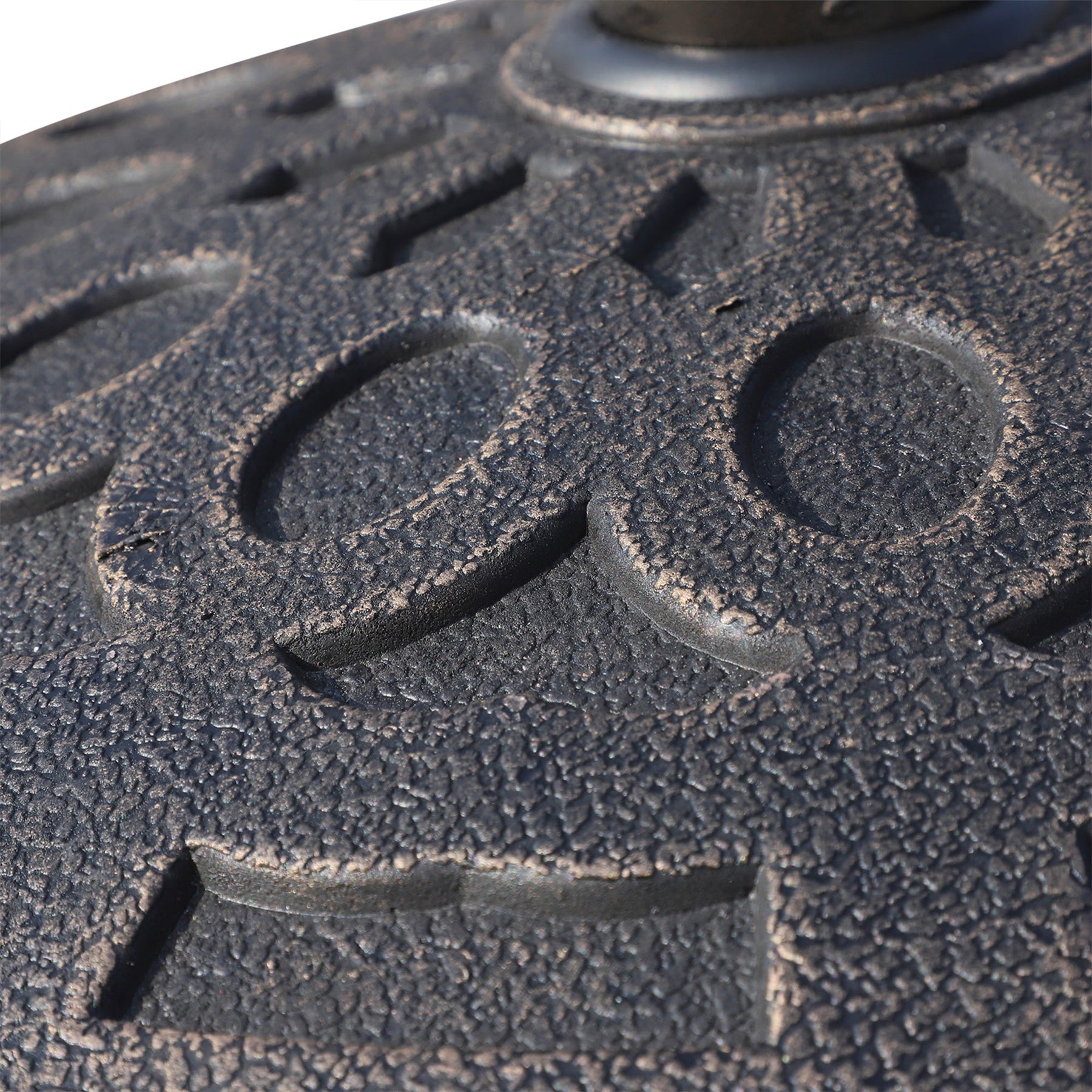 Add both function and style to your outdoor space with this elegant and durable umbrella base. Designed to fit umbrellas with a pole diameter of 1.5" (3.8 cm) or 1.9" (4.8 cm), this stand ensures a secure and steady foundation for your patio umbrella. Equipped with a hand-tightening rotary knob, you can easily slide your umbrella into the base and turn the knob to confirm a snug and secure fit. The bottom of the base is made of high-quality resin, designed to resist chipping, peeling, and aging, while the steel pole provides reliable support, even in outdoor conditions. Featuring a decorative bronze-tone connecting circle pattern, this umbrella stand brings a chic, high-end touch to your garden, patio, or backyard. It’s the perfect combination of durability and elegance.