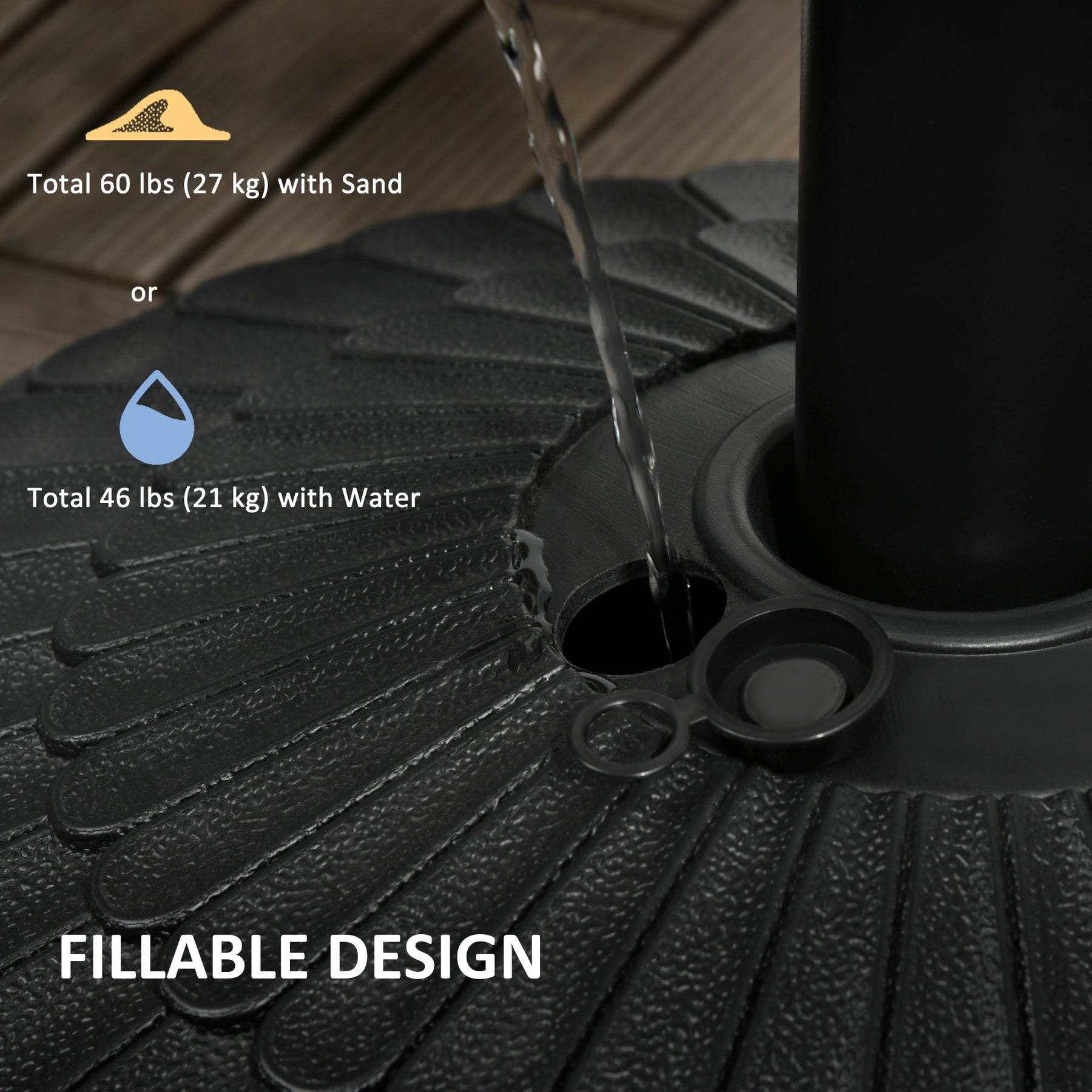 Outsunny Patio Umbrella Base with Handle, Heavy Duty Round Umbrella Stand, Garden Umbrella Holder for 1.5", 1.9" Poles, Black