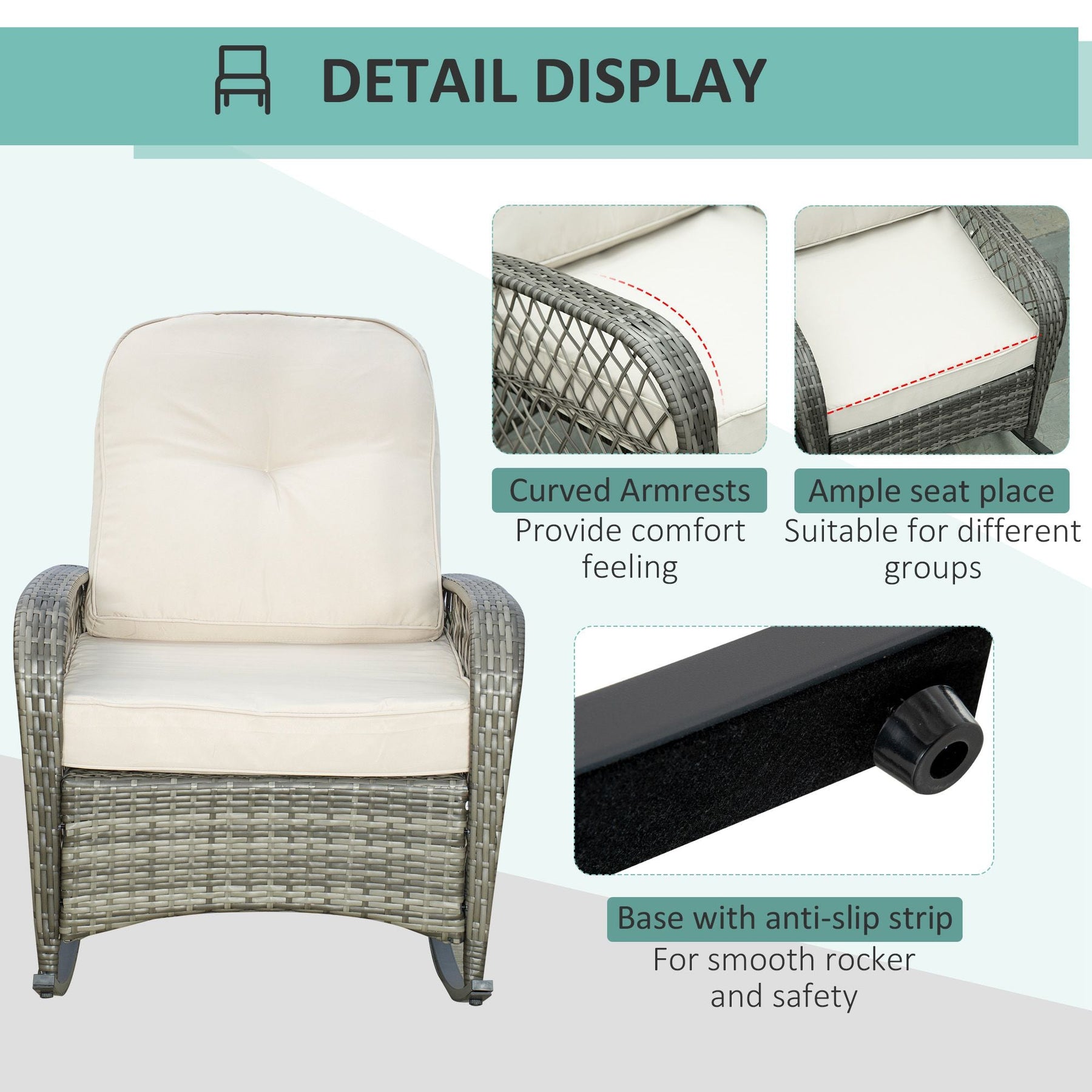 Add a touch of elegance and comfort to your outdoor space with this luxury wicker rocking chair. Perfect for your patio, garden, backyard, or park, this rocking chair combines timeless style with exceptional durability. The heavy-duty steel frame with a powder-coated finish ensures long-lasting use, while the hand-woven PE rattan wicker offers superior weather resistance. With ergonomic backrests, wide armrests, and an anti-slip base strip, this rocker not only enhances your outdoor decor but also delivers a comfortable and relaxing seating experience. The extra-wide curved armrests and thick soft cushions provide the ultimate in relaxation, while the removable and washable seat covers ensure easy maintenance. Whether you’re lounging during a sunny afternoon or entertaining guests, this rocking chair adds both function and charm to your space.