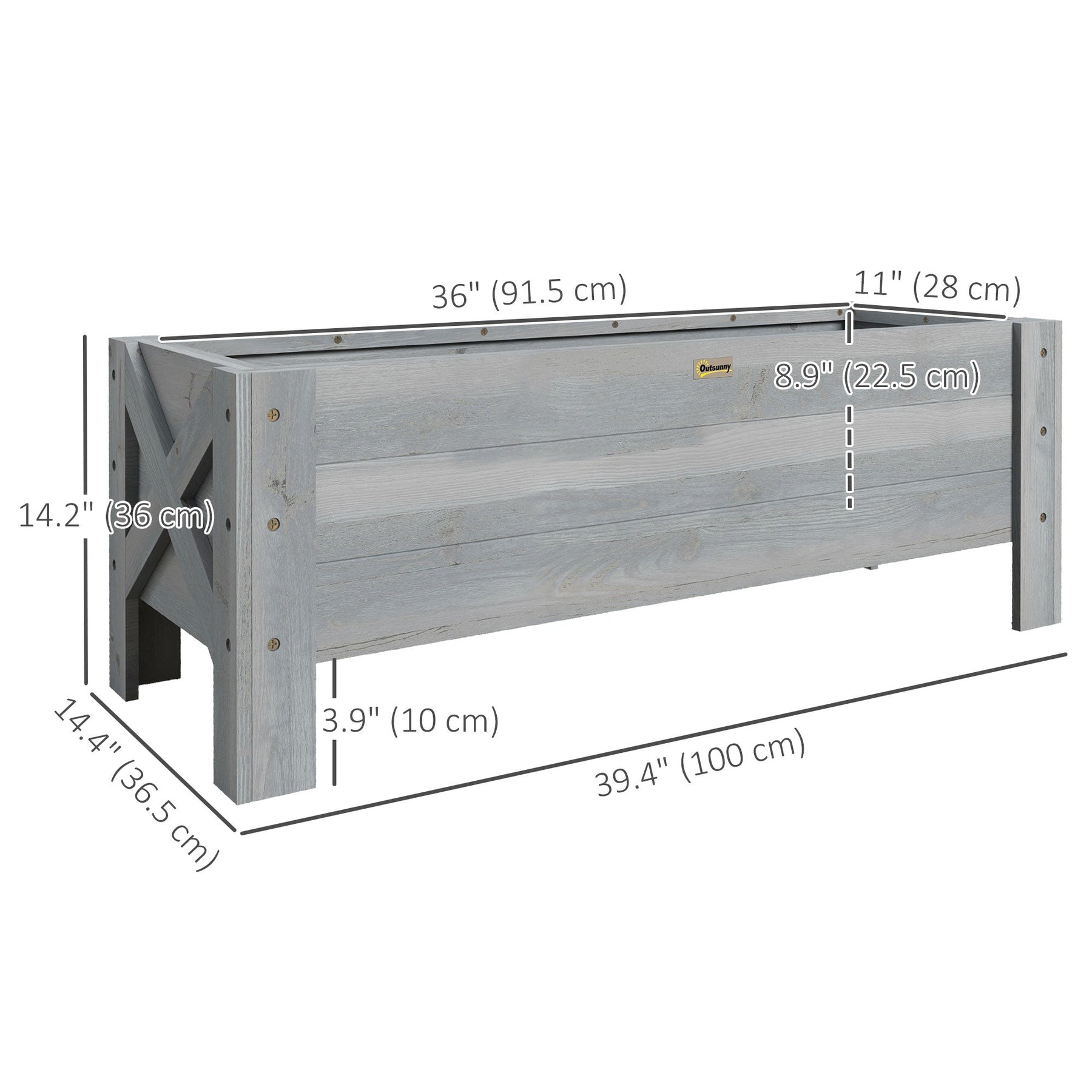 Raised Flower Bed Dimensions: Overall Dimension: 39.4" L x 14.4" W x 14.2" H (100 x 36.5 x 36 cm).