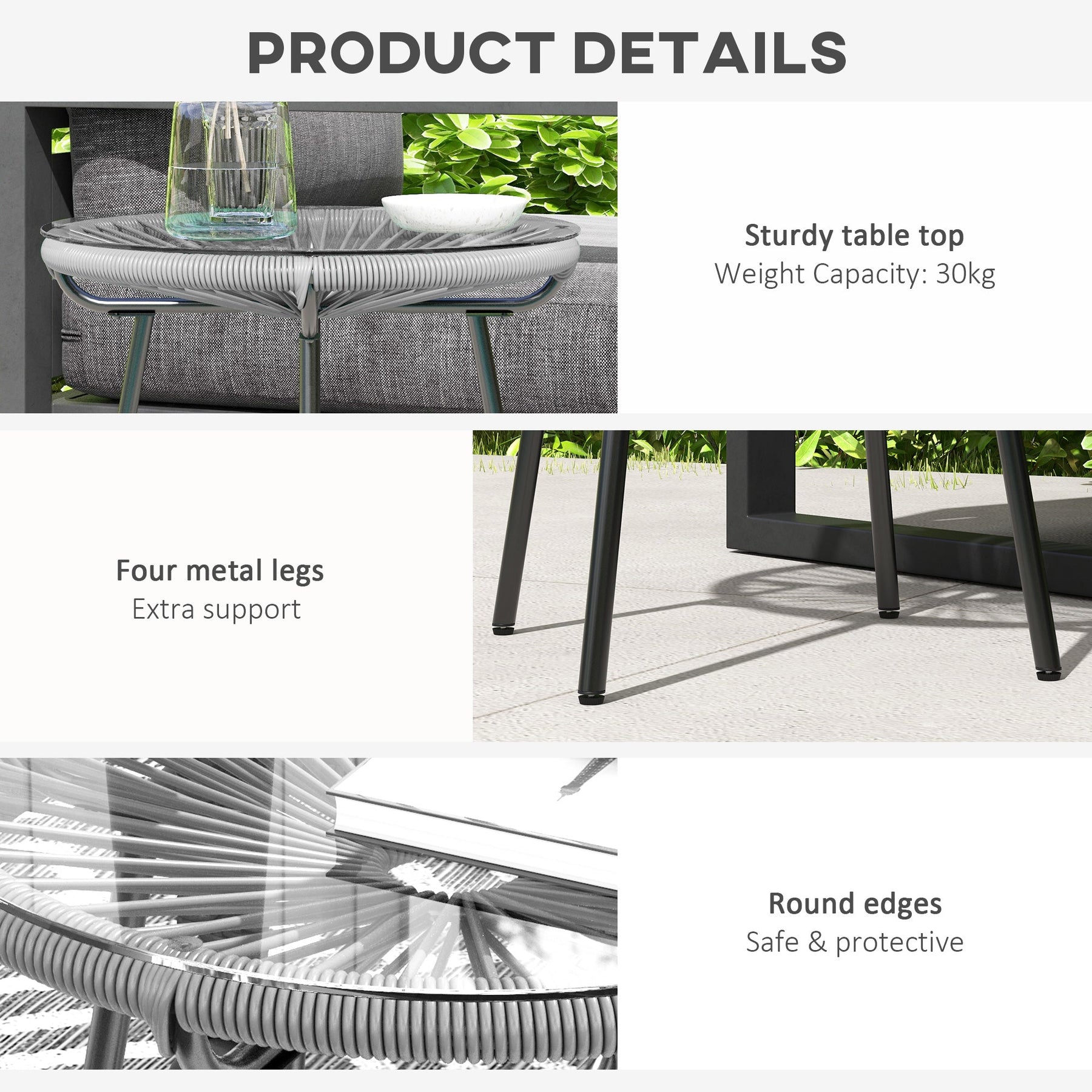 Outsunny Rattan Side Table, Round Outdoor Table, with Round PE Rattan and Tempered Glass Table Top for Patio, Garden, Grey