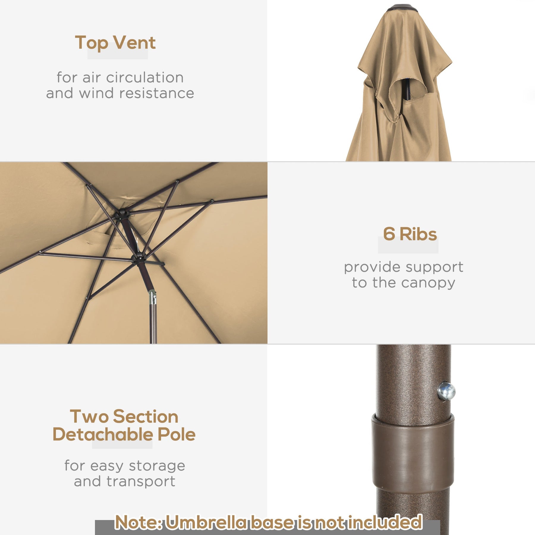 Durable & Sturdy Frame: Constructed with a rust-resistant aluminum pole and six rib supports for enhanced stability.