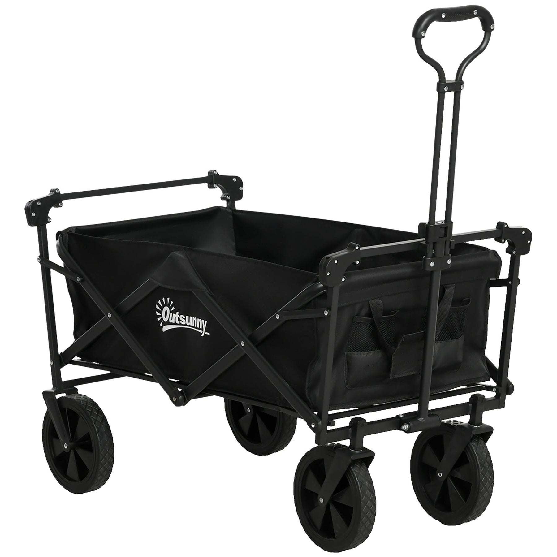 Outsunny Steel Frame Folding Garden Cart, Collapsible Wagon Cart with Removable Canopy, Telescopic Handle and Carrying Bag