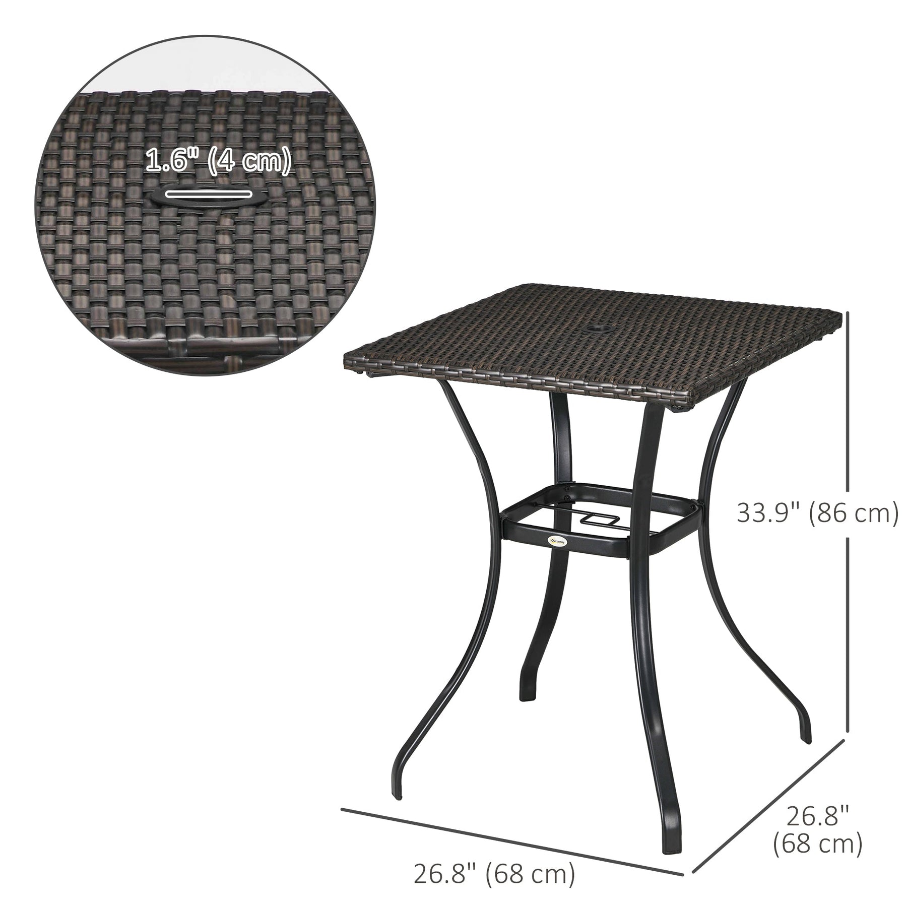 Outsunny Wicker Patio Dining Table with Umbrella Hole Outdoor Rattan Coffee Table for Garden Balcony Mixed Brown