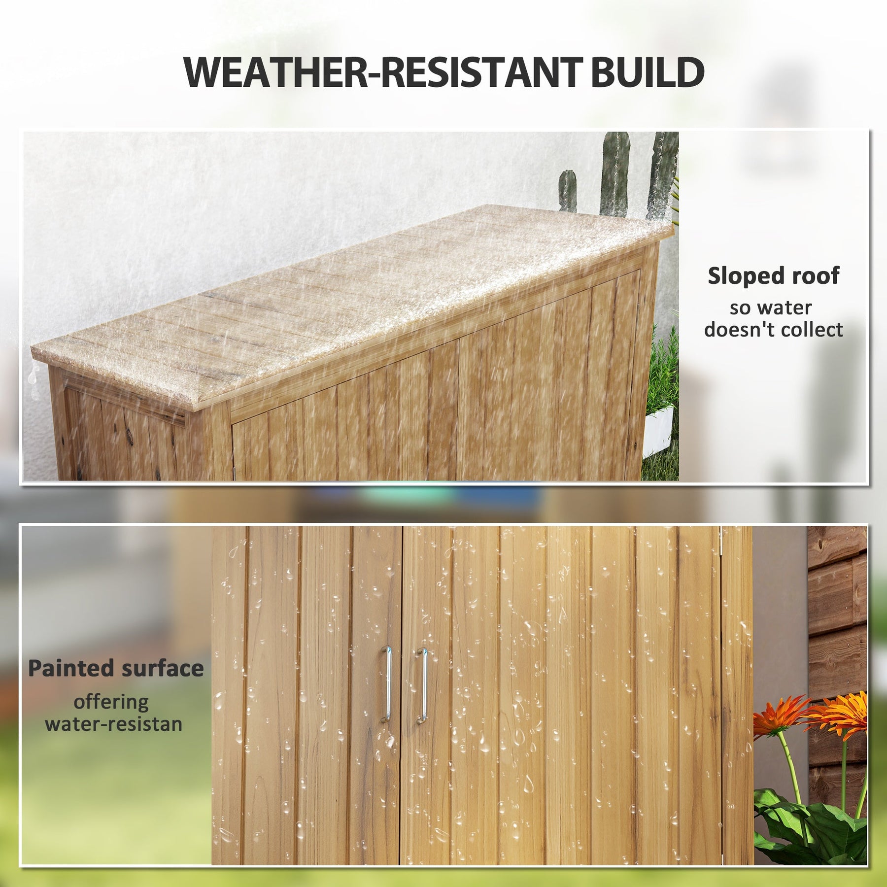 Weather-Resistant Build: Sloped design prevents water stagnation, with a painted wooden surface for added protection