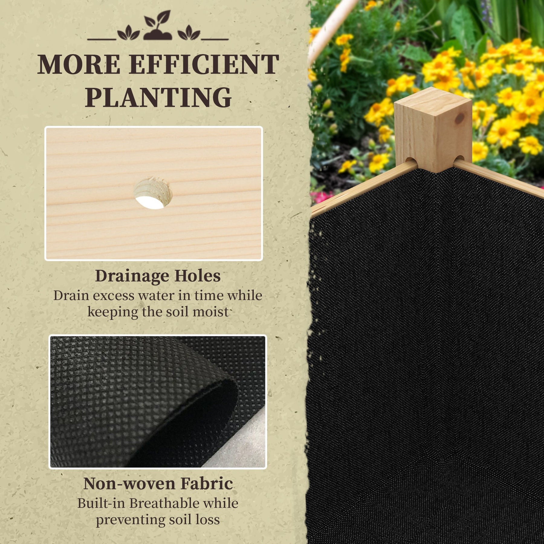 Grow your dream garden comfortably with this spacious raised garden bed. Designed with a large 148L soil capacity, it offers ample room for herbs, vegetables, flowers, or decorative plants. At a raised height of 31.5", it minimizes bending, making gardening more accessible for everyone—especially those with back or mobility concerns. Two drainage holes with a non-woven fabric liner ensure proper water flow while protecting both your plants and the wood from water damage. Crafted from durable fir wood with a protective varnish coating, this planter box is made to thrive indoors or out, season after season.