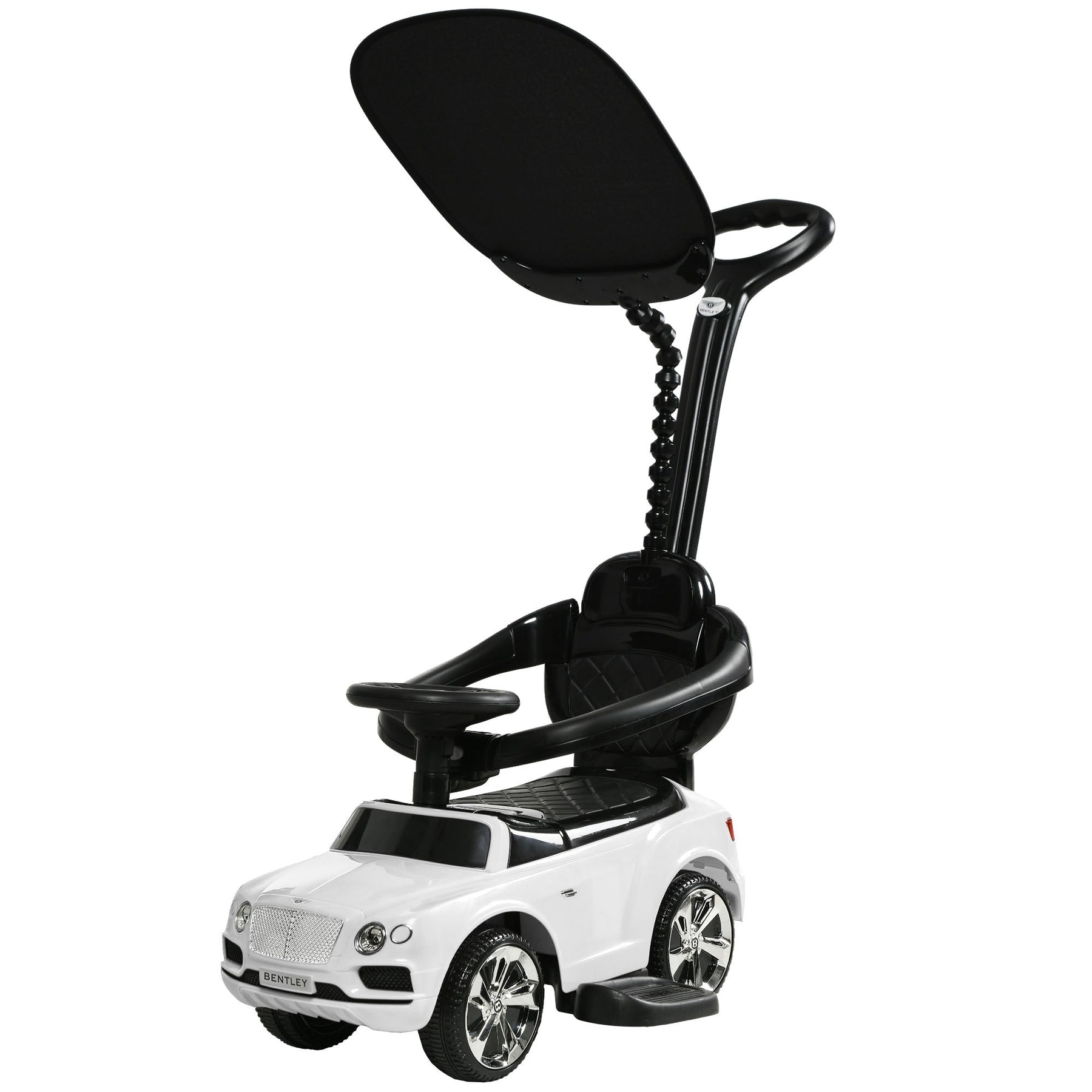 The Bentley Bentayga licensed baby push car is a luxurious and practical 3-in-1 ride-on vehicle designed to grow alongside your child, offering seamless transitions through key developmental stages. Ideal for children aged 12 to 36 months, it transforms from a parent-controlled push car into a ride-on sliding car, complete with removable foot pedals, a safety guardrail, and a parent push handle for enhanced control. Comfort and safety are top priorities with features like a removable canopy for sun protection, a soft padded anti-slip seat, and shock-absorbing wheels that deliver a smooth and quiet ride. The secure design includes a supportive backrest and an anti-over-backwards structure to ensure your toddler’s stability. For added fun and engagement, it comes with built-in music and a horn, plus an under-seat storage compartment to carry toys or snacks during play. Measuring 35.4" long, 19.3" wide, and 37.4" high, with a maximum load capacity of 55 lbs, this ride-on car offers an exciting and safe driving experience for your little one. Assembly is required, and the product meets SOR qualification standards.