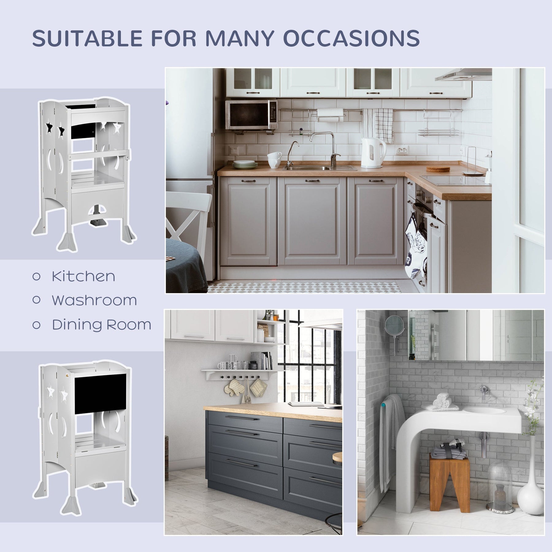 Ideal for use in the kitchen, washroom, and dining room
