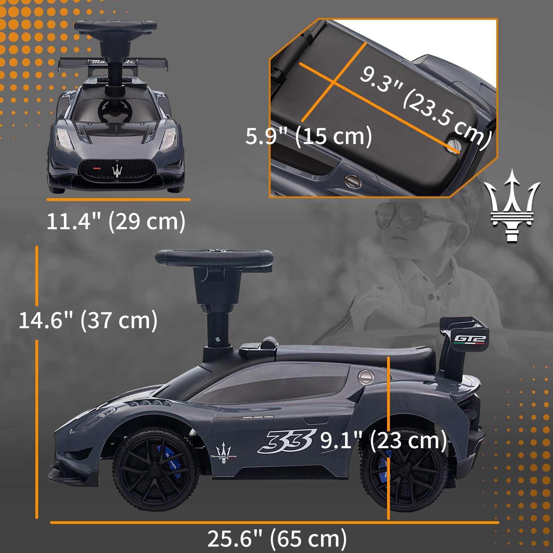 Qaba Licensed Maserati GT2 Baby Sliding Car with Storage, Music, Horn, Foot to Floor Toddler Car for 18-60 Months, Grey