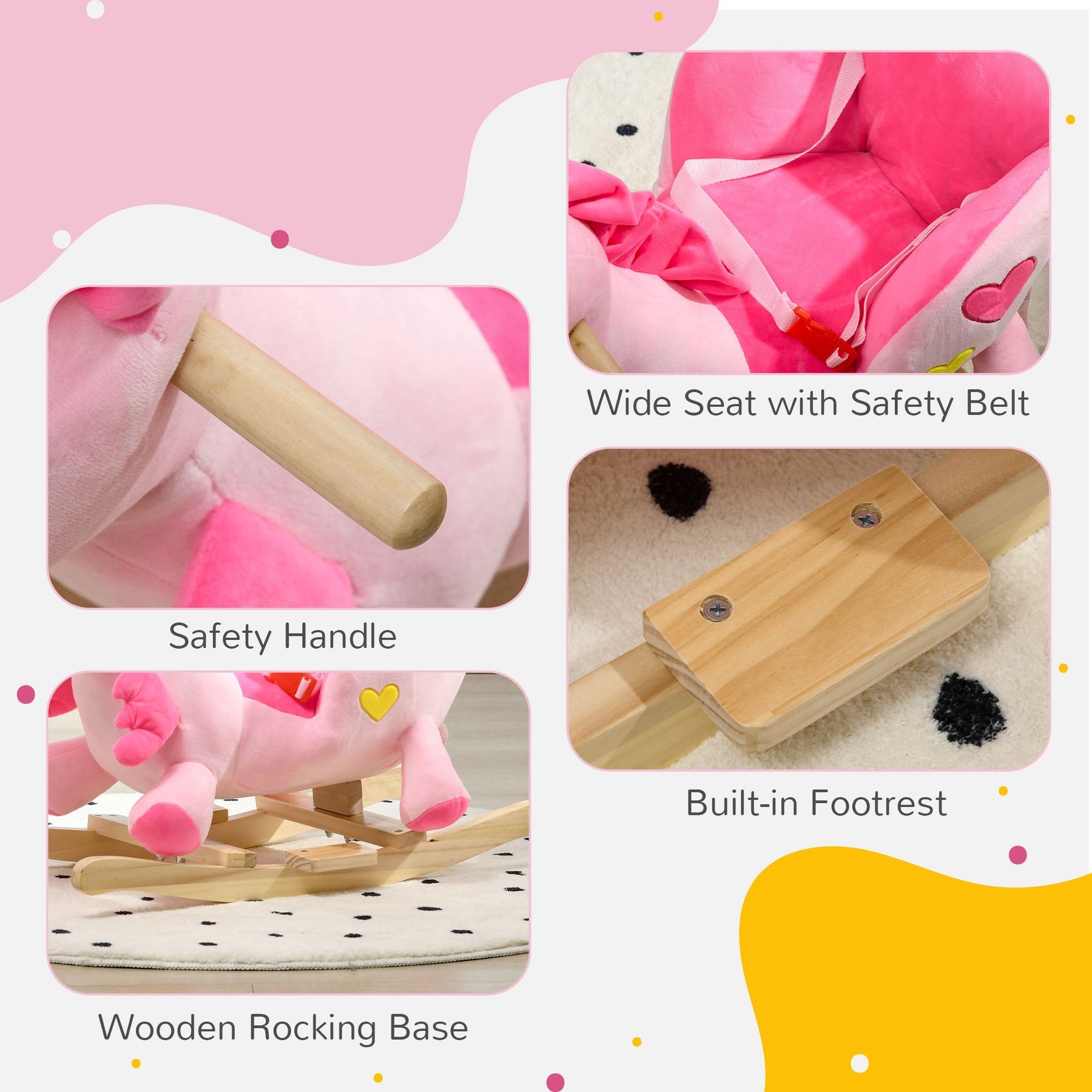 Qaba Rocking Unicorn for Babies - Ride On Horse with Songs, Toddler Rocker with Safety Belt, 1.5-3 Years, Pink