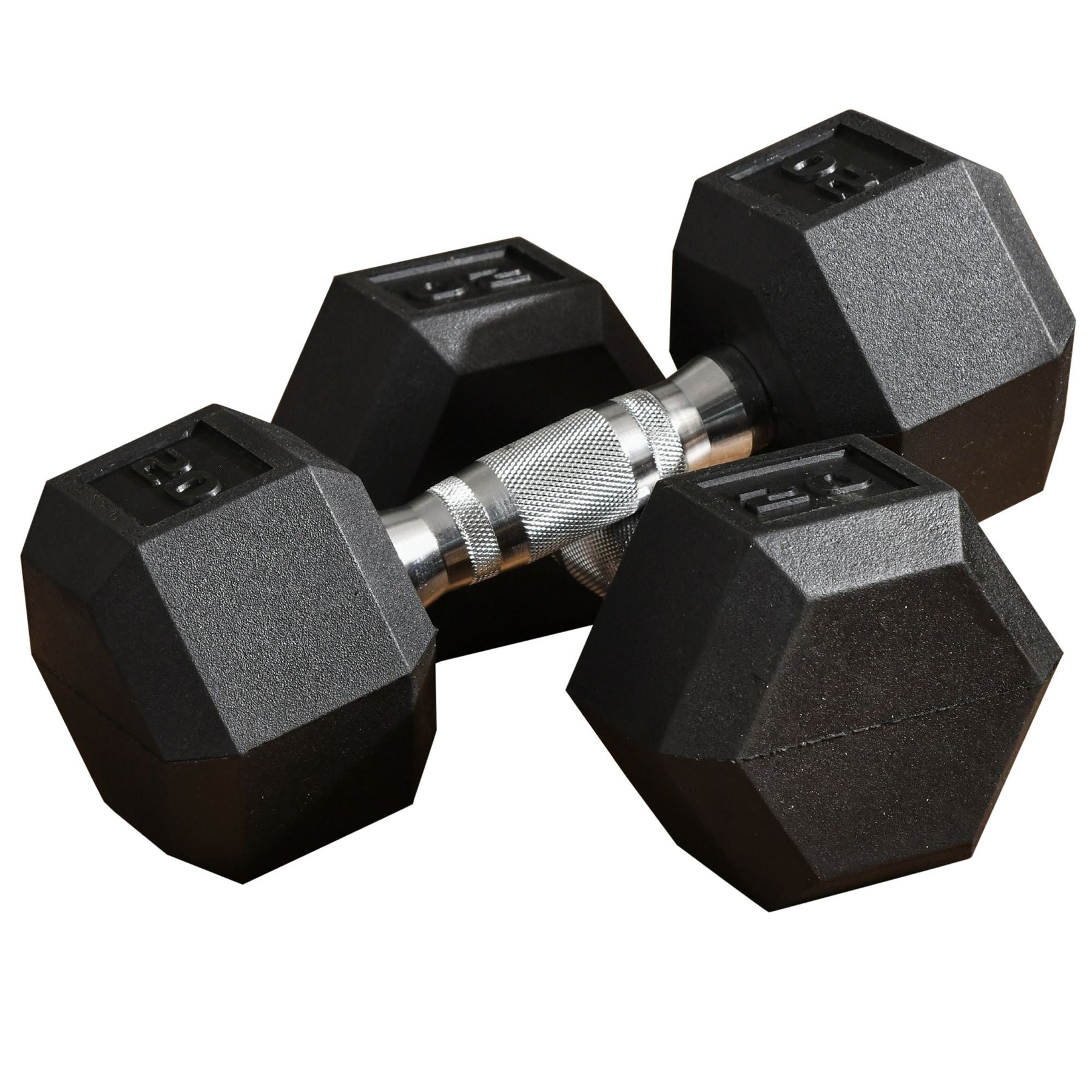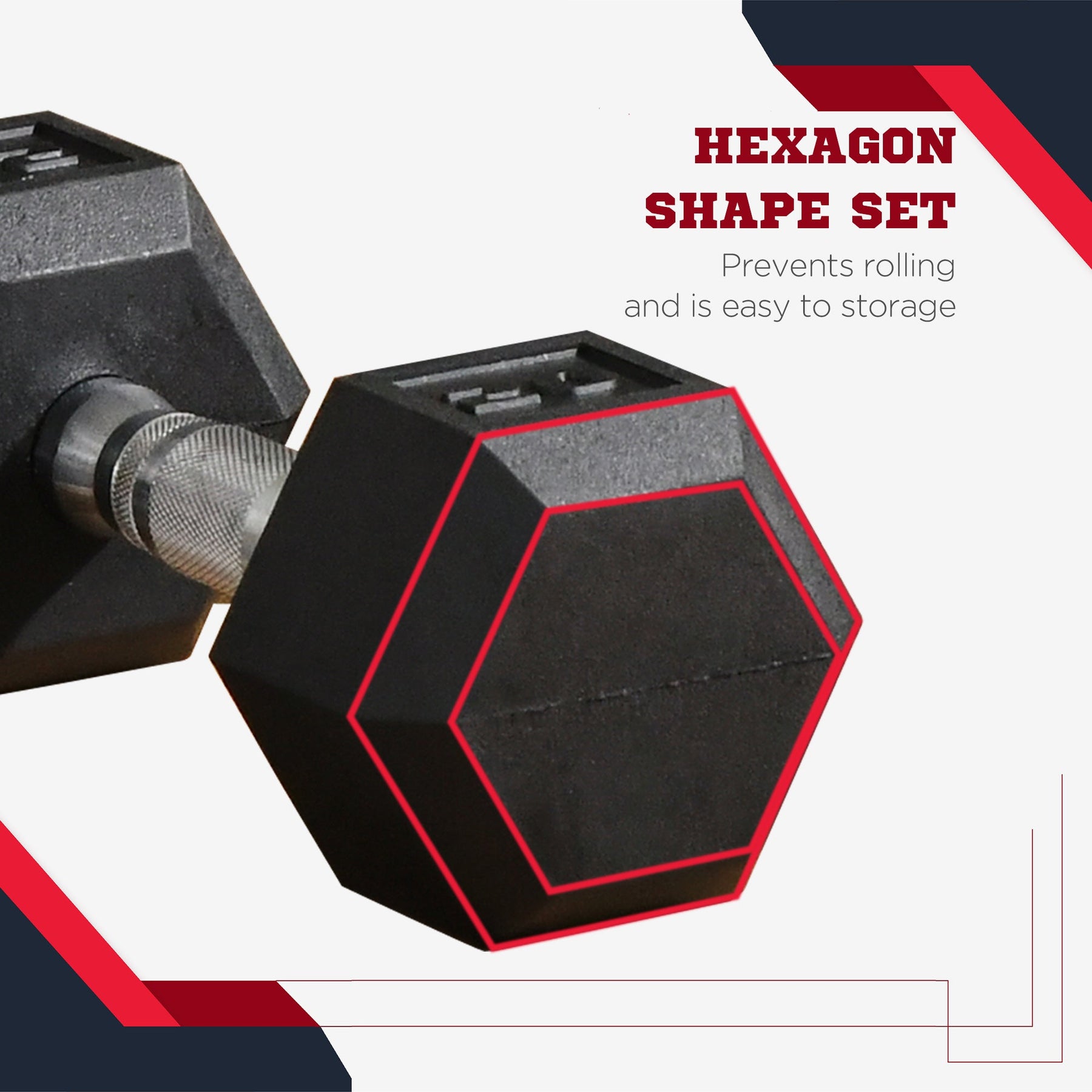 Elevate your fitness routine with the Rubber Dumbbells Set, designed for full-body strength training. These dumbbells are perfect for building muscles in your arms, shoulders, back, and more. Constructed with durable steel and coated in protective rubber, these weights are built to last while safeguarding your floors. The hexagon shape prevents the dumbbells from rolling, making them easy to store and use. Featuring solid metal handles with a non-slip grip, these dumbbells ensure a safe, comfortable workout experience.