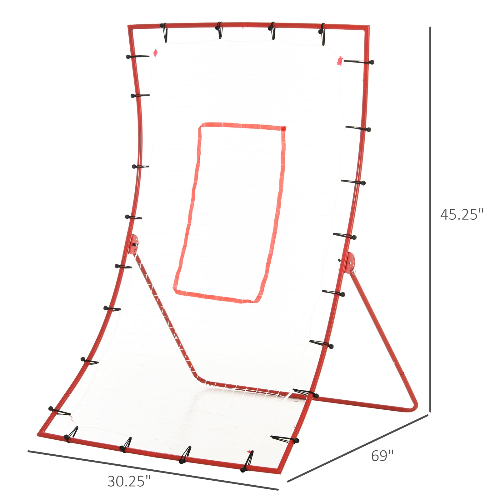 Enhance your training with this versatile multi-angle sports net stand, designed to accommodate various sports like baseball, football, basketball, and volleyball. Featuring 5 adjustable angles, this net allows for different playing methods, doubling the fun and training possibilities. Crafted from solid, high-quality red iron pipe, this stand ensures stability and durability. It is securely fixed to the ground using 4 J-nails, preventing any movement during use. The white net is secured with 24 strands of PE rope, making it easy to adjust, fix, or disassemble for convenient storage. Whether you're practicing your passing, catching, or hitting, this multi-function net stand will help you improve your skills across multiple sports.