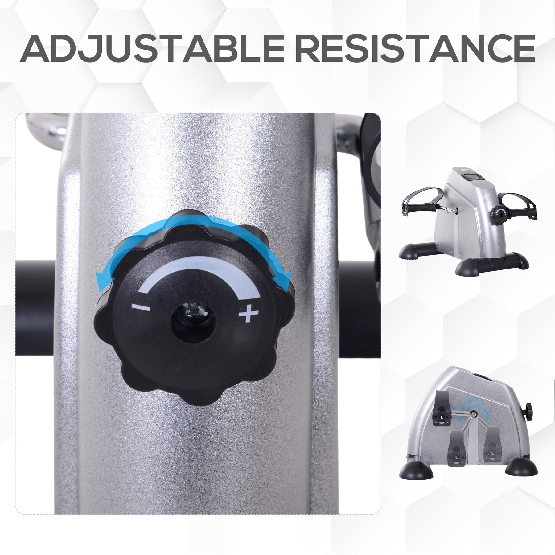 Enhance your fitness routine with this compact Arm & Leg Exercise Bike, designed to help improve circulation, stamina, and muscle strength. Whether you're working at home or in the office, this quiet and smooth pedal exerciser offers a low-impact workout that's gentle on the joints. The large LCD monitor displays essential workout metrics like time, speed, count, and calories burned at the touch of a button. With adjustable resistance via the tension knob, you can customize your workout to your desired intensity. The non-slip foot pads and adjustable foot straps ensure stability and safety, while the compact, portable design makes it easy to store and use in small spaces.