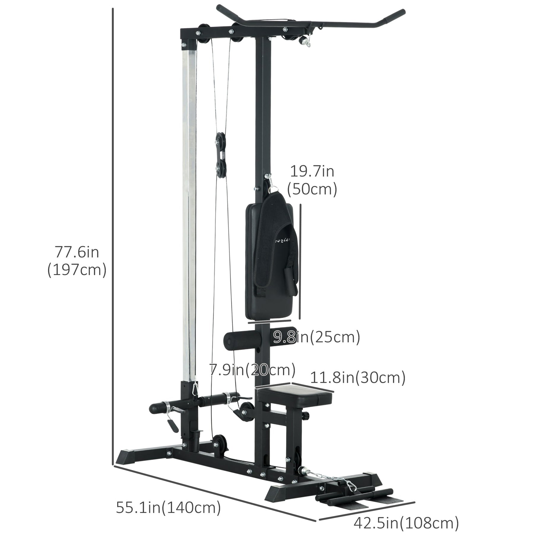 Enhance your strength and sculpt your muscles with this Multi-Exercise Cable Machine, designed to target your back, shoulders, and chest. This versatile machine allows for a variety of exercises, including pull-downs, low rows, back extensions, front raises, and more, helping you achieve a complete workout. The adjustable resistance system, with a 1"/2" (2.5/5cm) weight bar, accommodates up to 110lbs (50kg) of weight plates per side, growing with you as you progress in your fitness journey. The adjustable seat offers four different height settings, ensuring a comfortable and safe workout. Additionally, the non-slip, flip-up footplate adjusts to match your exercise positions, providing maximum stability and safety.
