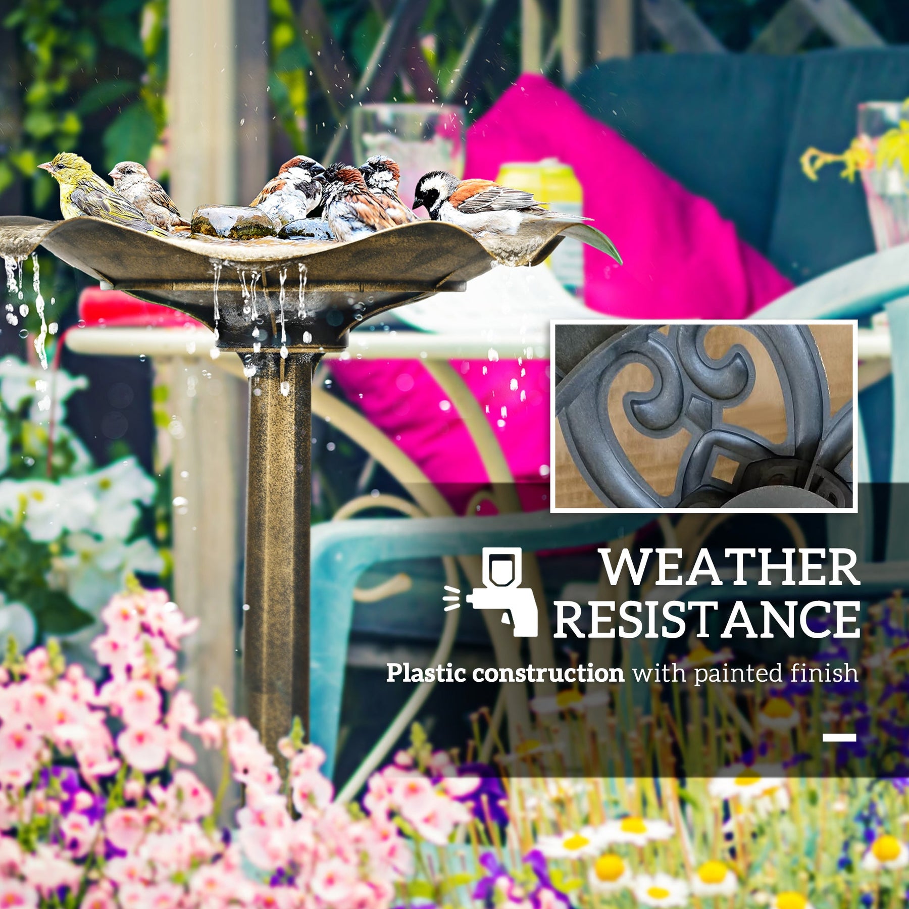 Add charm and function to your garden with this Versatile Lotus Leaf Bird Bath, a beautiful combination of rustic décor and practical wildlife care. Designed with a wide, shallow basin, this bird bath offers a refreshing oasis for birds to drink, bathe, or feed, supporting your local feathered friends in style. The lotus leaf-inspired bowl and elegantly scrolled pedestal create a timeless, natural look that enhances any outdoor setting. Made from durable, weather- and frost-resistant plastic with a hand-painted retro finish, this lightweight bird bath is built to last. For stability, it includes three ground stakes to anchor into the soil. On solid surfaces, you can add sandbags or weights (not included) to keep it steady. Whether nestled among your flowers or placed on your patio, it’s a stylish and functional garden feature.