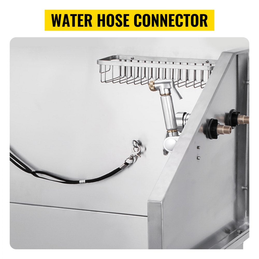Make pet grooming hassle-free with the VEVOR Dog Grooming Tub, a professional-grade stainless steel bathing station ideal for small to medium-sized pets. This 38-inch grooming tub is designed for durability, hygiene, and ease of use. Whether you’re a grooming professional or a pet owner, this tub offers ample space and includes a faucet and essential accessories for a complete and efficient bathing experience. The spacious design ensures pet comfort, while the rust-resistant stainless steel makes cleaning and maintenance a breeze.