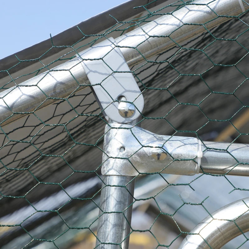 PawHut Chicken Run Walk-In Metal Chicken Coop, 3 Rooms Galvanized Poultry Cage Outdoor with Waterproof UV-Protection Cover for Rabbits, Ducks, 9.8&