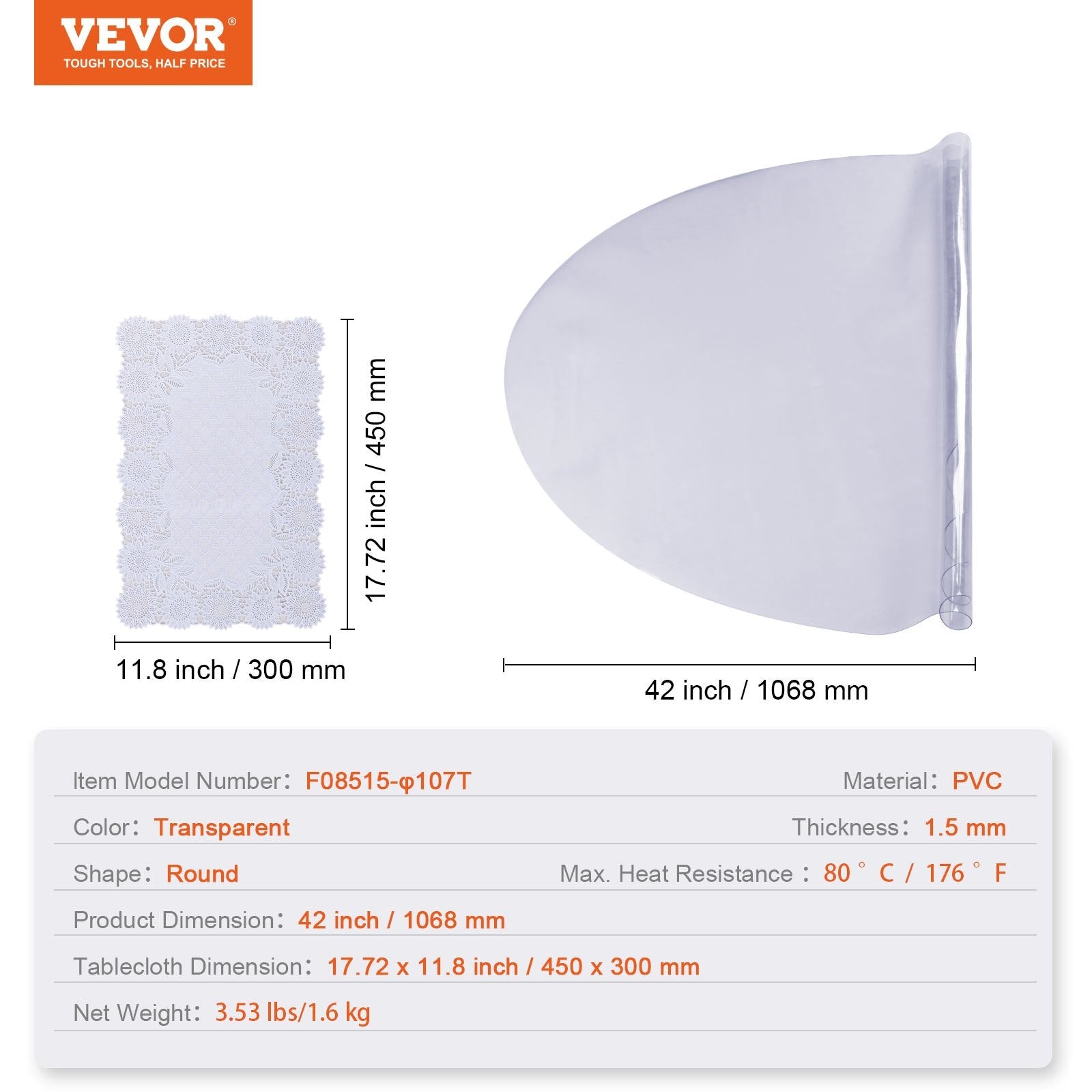 Protect your tables with this durable and clear PVC table cover protector. Measuring 42 inches in diameter and 1.5 mm thick, it offers waterproof and heat-resistant protection up to 80°C (176°F). Ideal for writing desks, coffee tables, and dining tables, it is easy to use, cut to fit, and helps keep surfaces safe from spills and scratches while maintaining the table’s appearance.