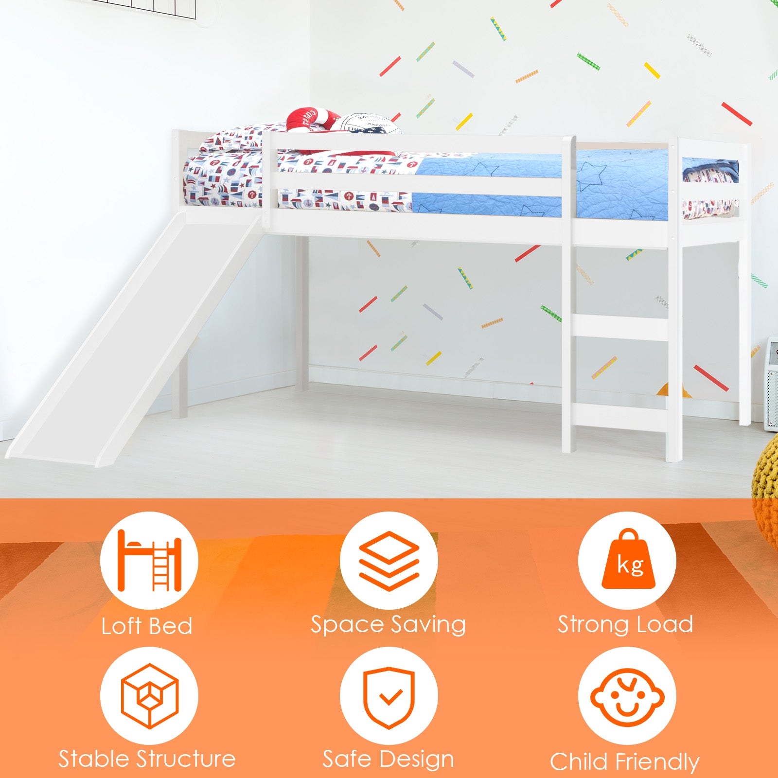 Slide & Ladder Design: The bed includes both a slide and a wide ladder, making it both a functional and entertaining piece. The slide adds a playful touch, enticing children to enjoy their own space and promoting independence.