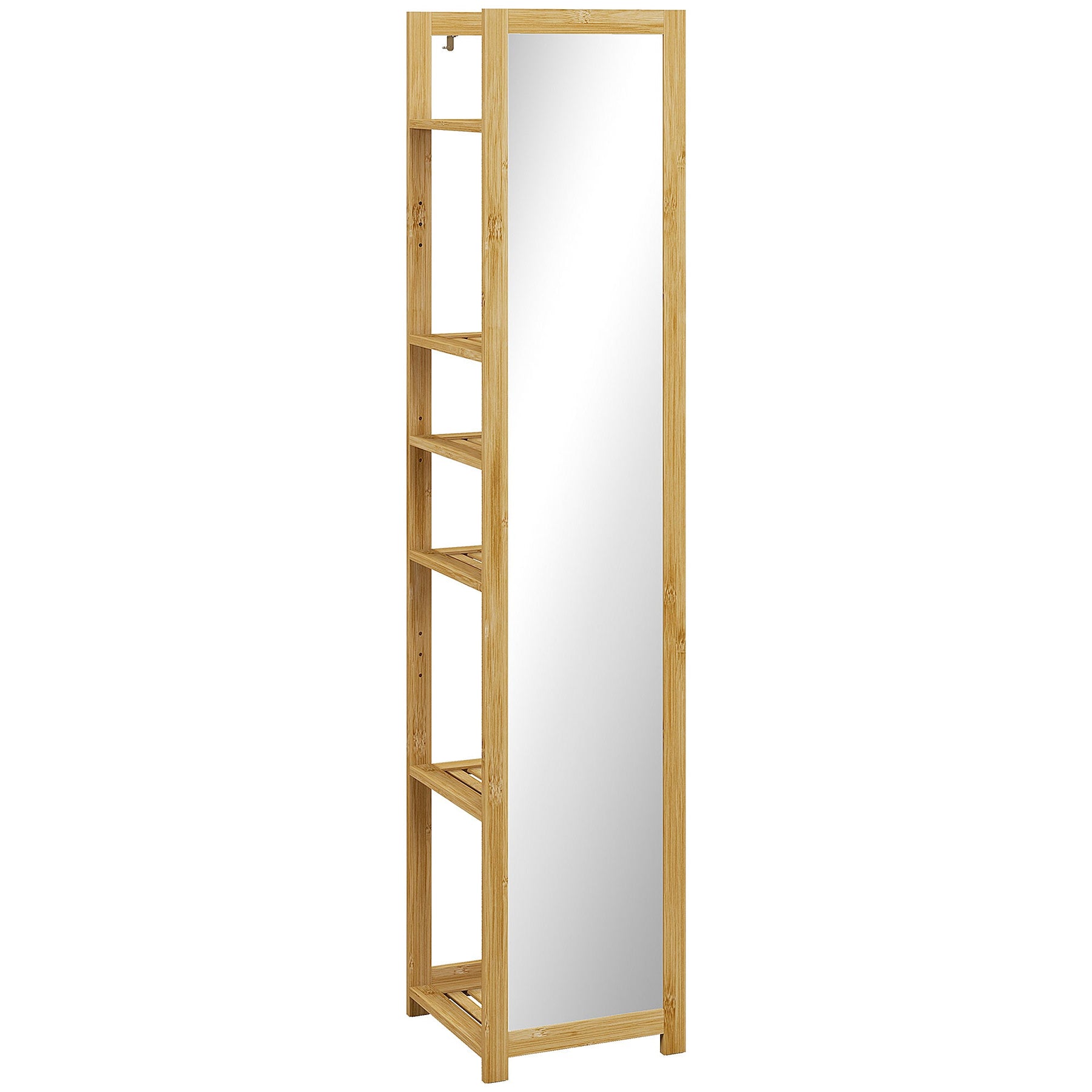This Full Length Mirror with Bamboo Storage Shelf is the perfect addition to your bathroom or dressing area, offering a functional combination of a stylish mirror and a large storage solution. The 6-tier shelf provides ample space to organize toiletries, towels, and essentials, while the natural bamboo frame adds a touch of rustic charm to your décor. Designed for both safety and stability, this mirror ensures a secure setup with anti-tipping features and non-slip foot pads.