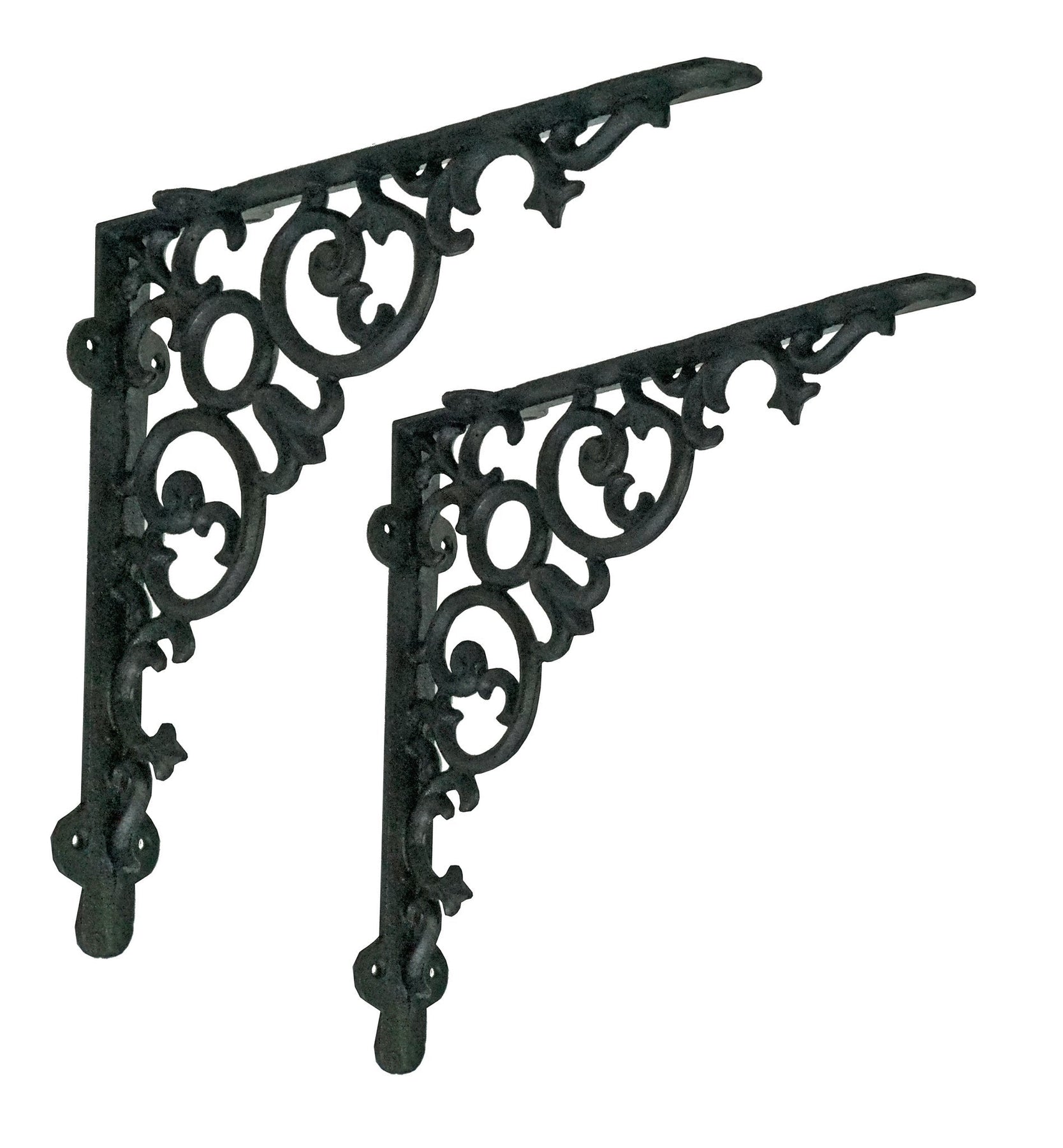 Large Antique Black Scroll Shelf Bracket – 12 x 2 x 12 in