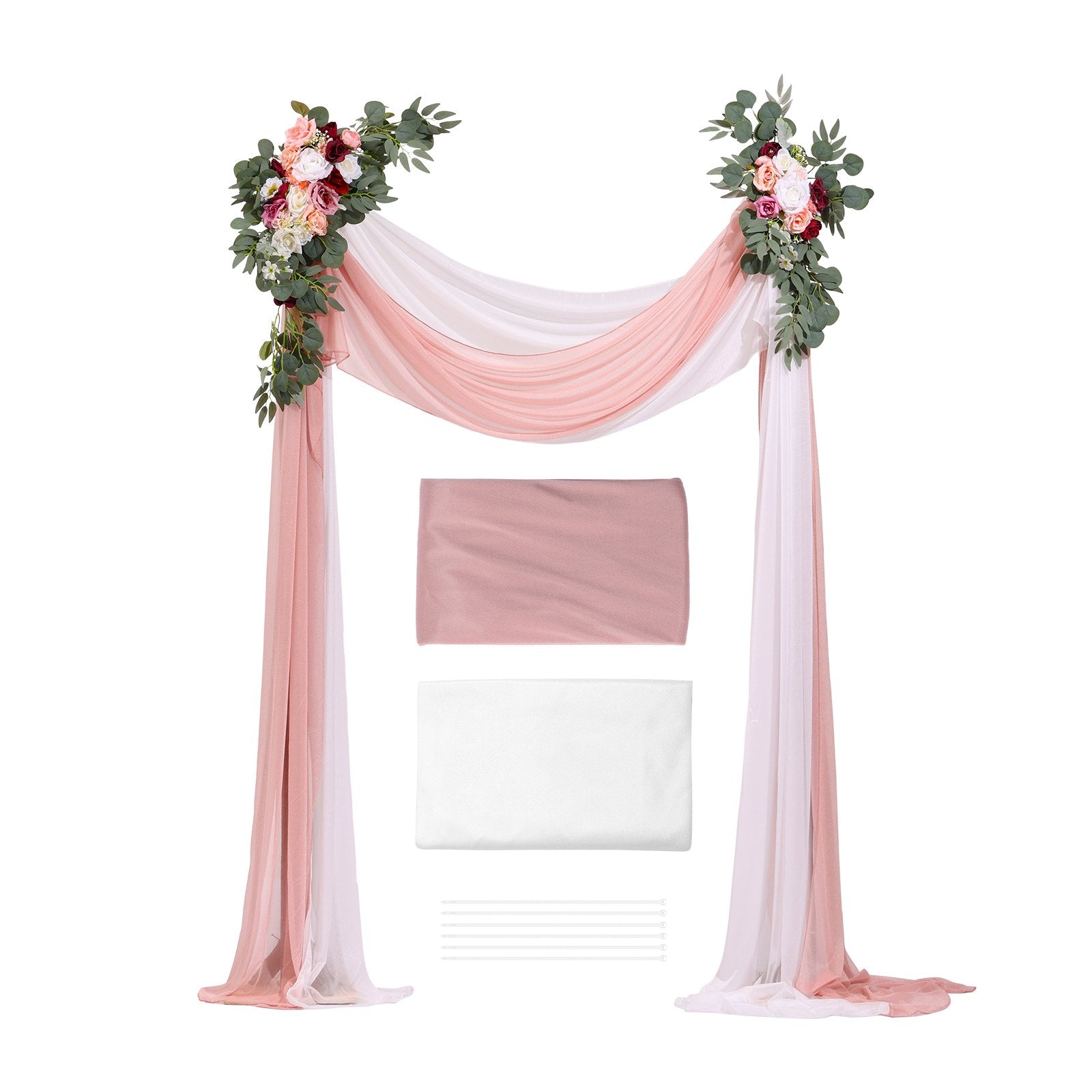 VEVOR Artificial Wedding Arch Flowers Kit Pink With 2 Pcs Flowers 2 Pcs Drapes