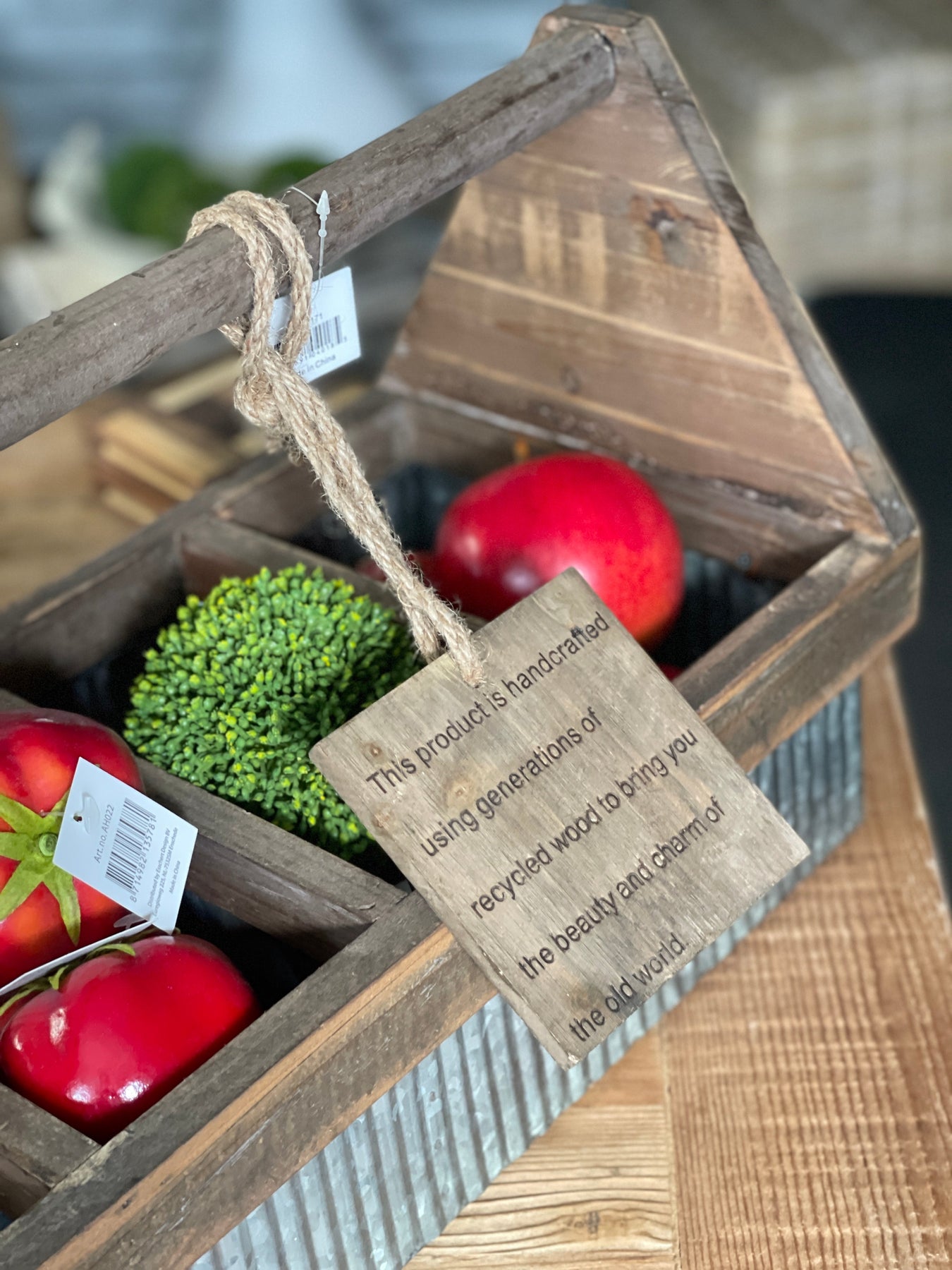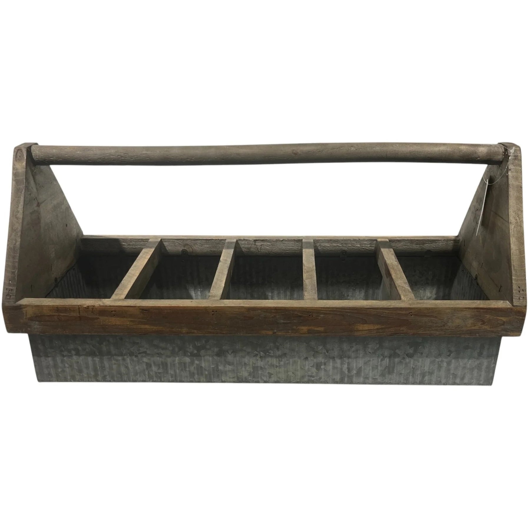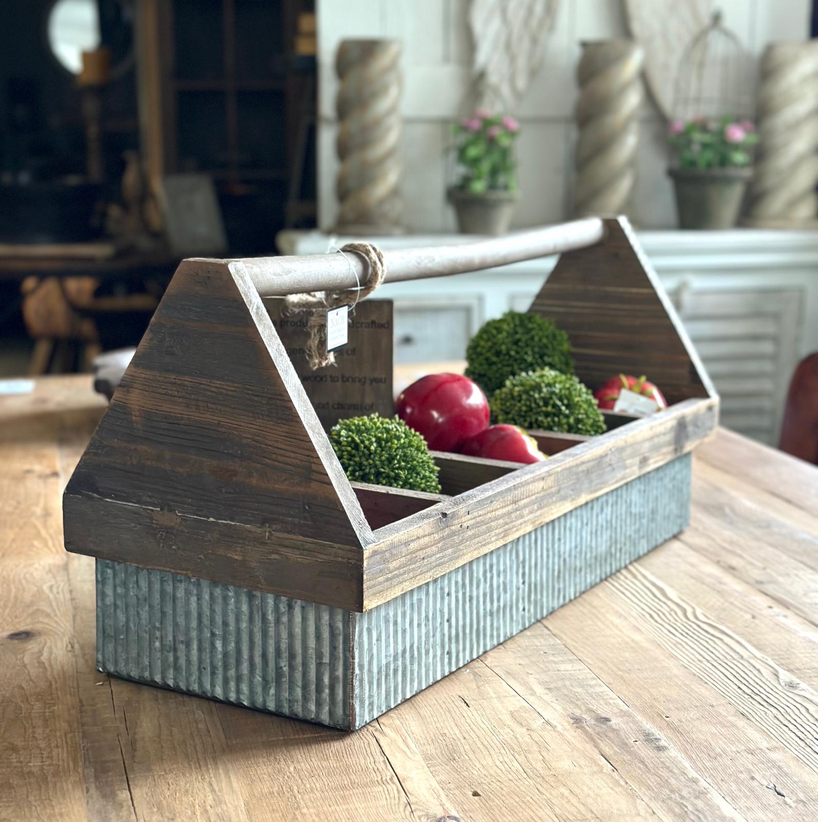 Combine rustic charm and sturdy construction with this Wooden & Metal Basket. Perfect for organizing household items, storing produce, or adding a decorative touch to any room. Its blend of natural wood and durable metal creates a versatile basket suitable for various uses around your home.