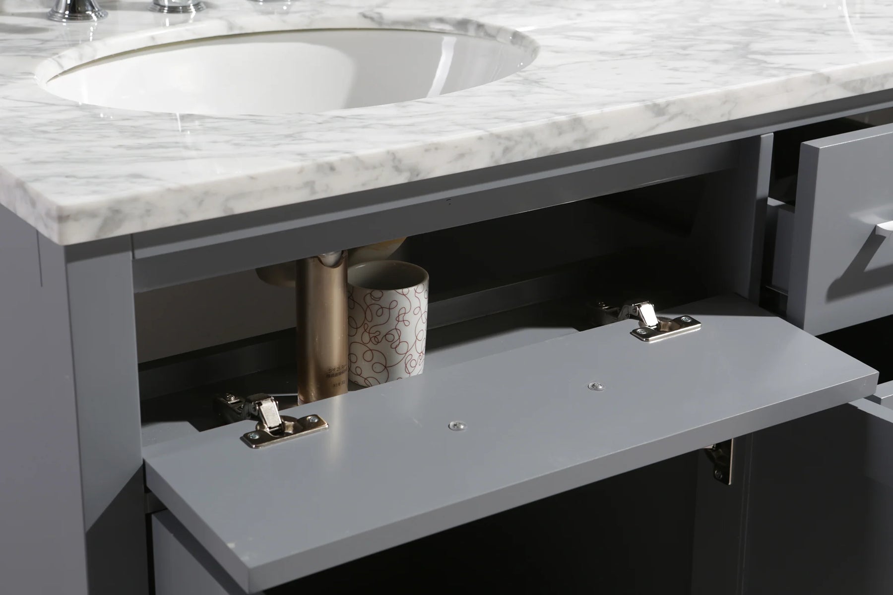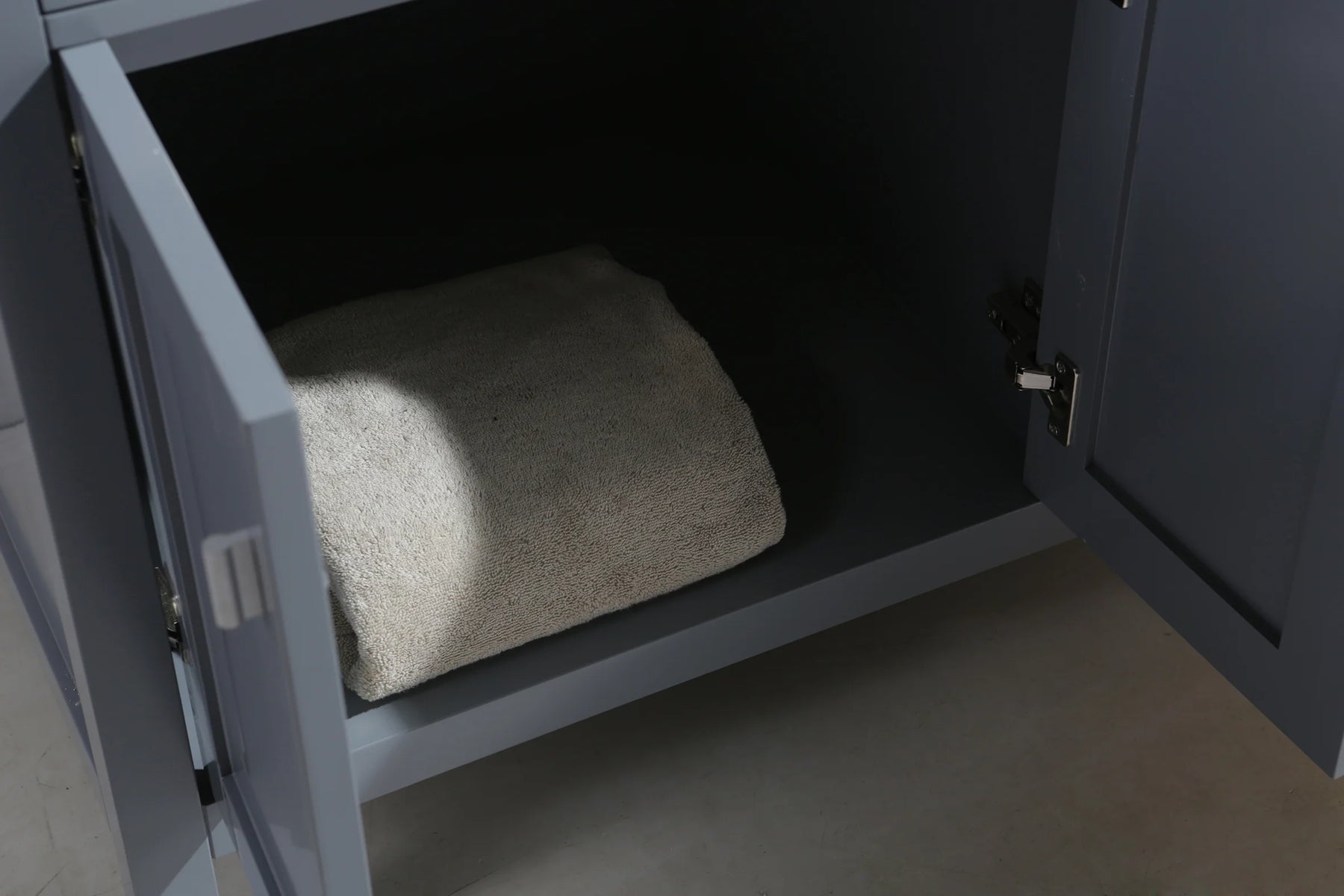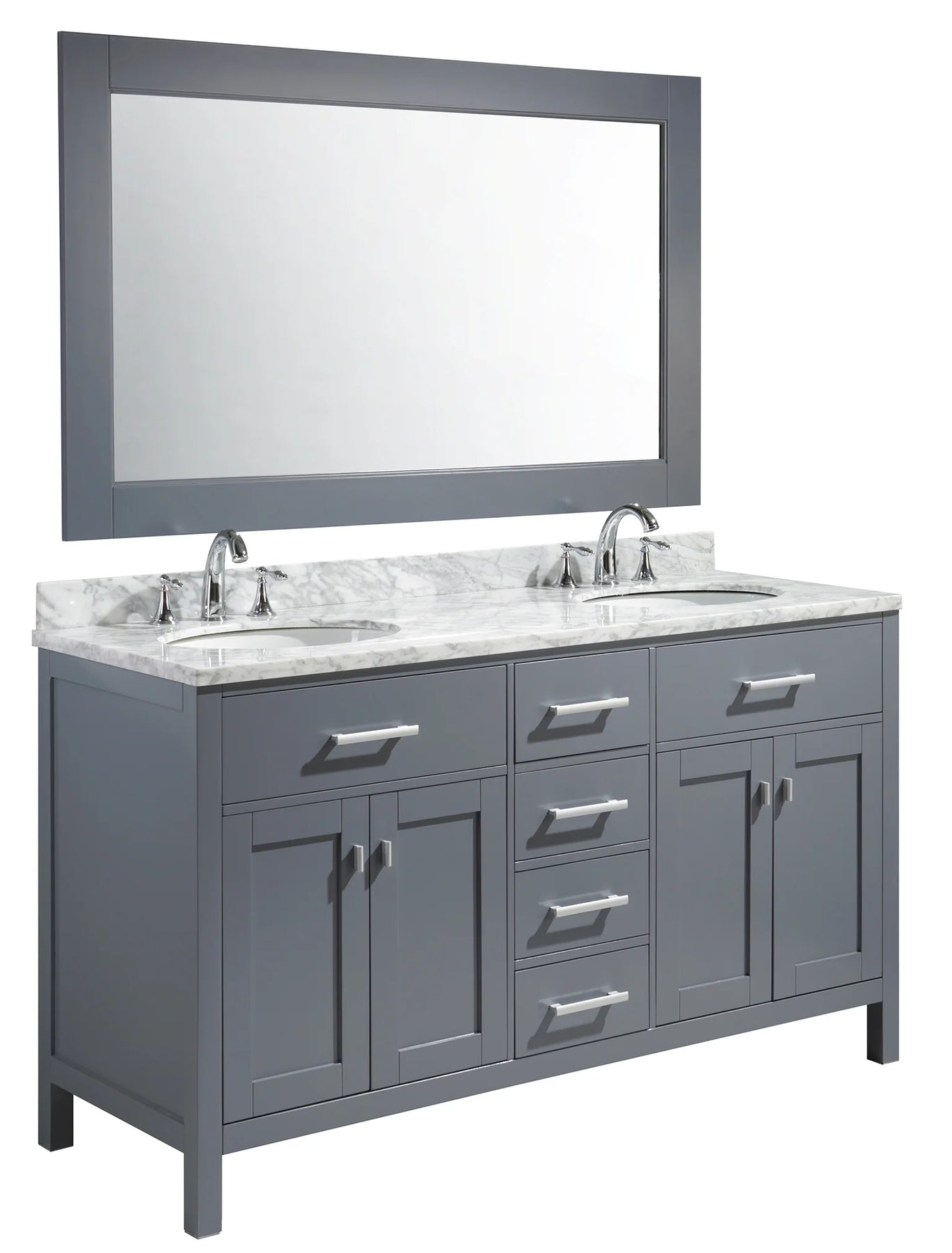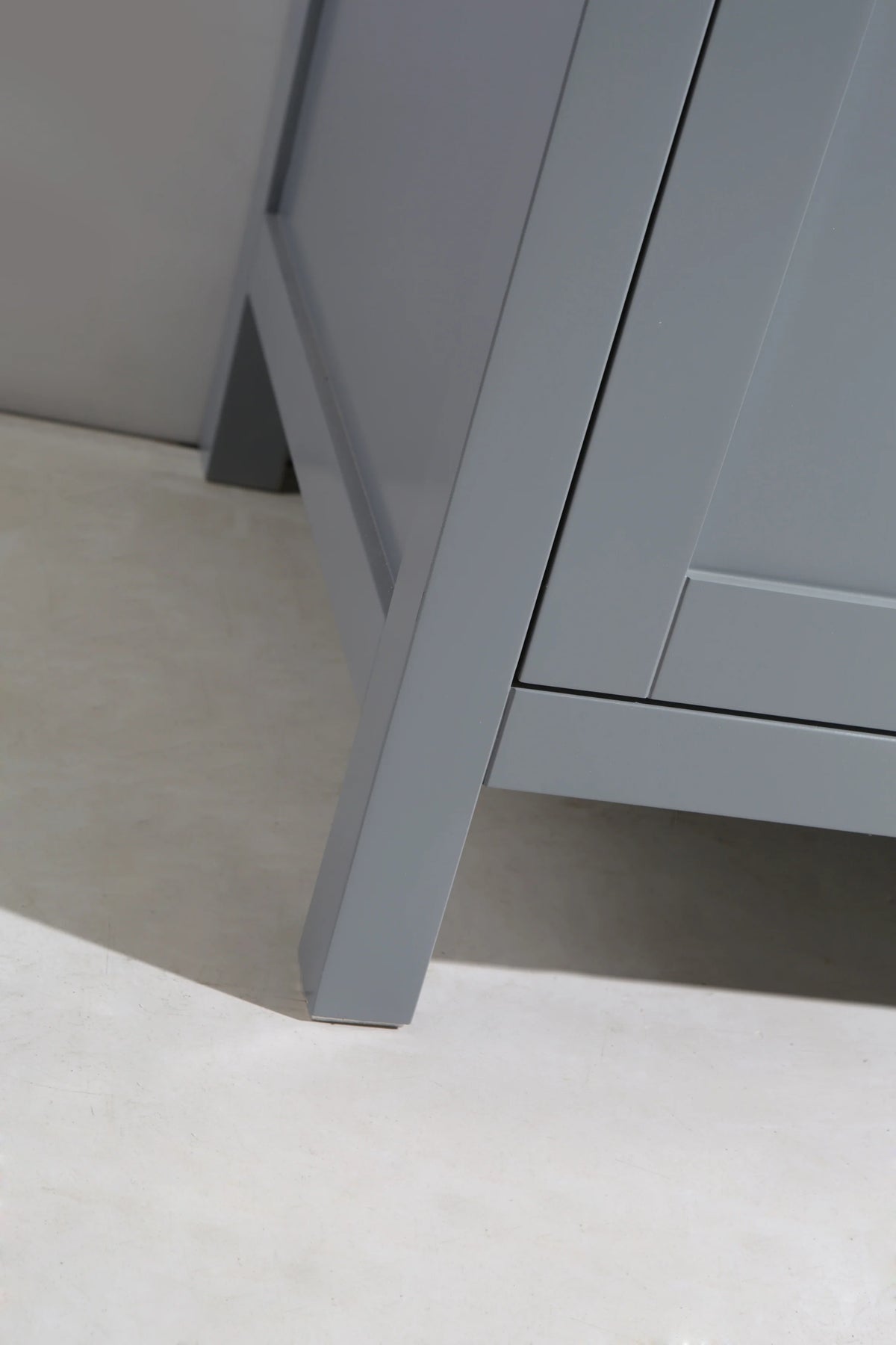 The London 61" Double Sink Vanity in Gray brings both elegance and functionality to your bathroom, offering a spacious and stylish solution for shared or master bathrooms. The contemporary gray finish complements a wide range of bathroom styles, from modern to transitional, creating a sleek and sophisticated atmosphere. Featuring two sinks, this vanity provides ample space for two users, making it ideal for busy mornings. The expansive countertop and abundant storage options, including multiple drawers and cabinets, offer plenty of room to keep your bathroom essentials organized. With durable construction and timeless design, the London vanity is built to last and elevate the look of your bathroom.