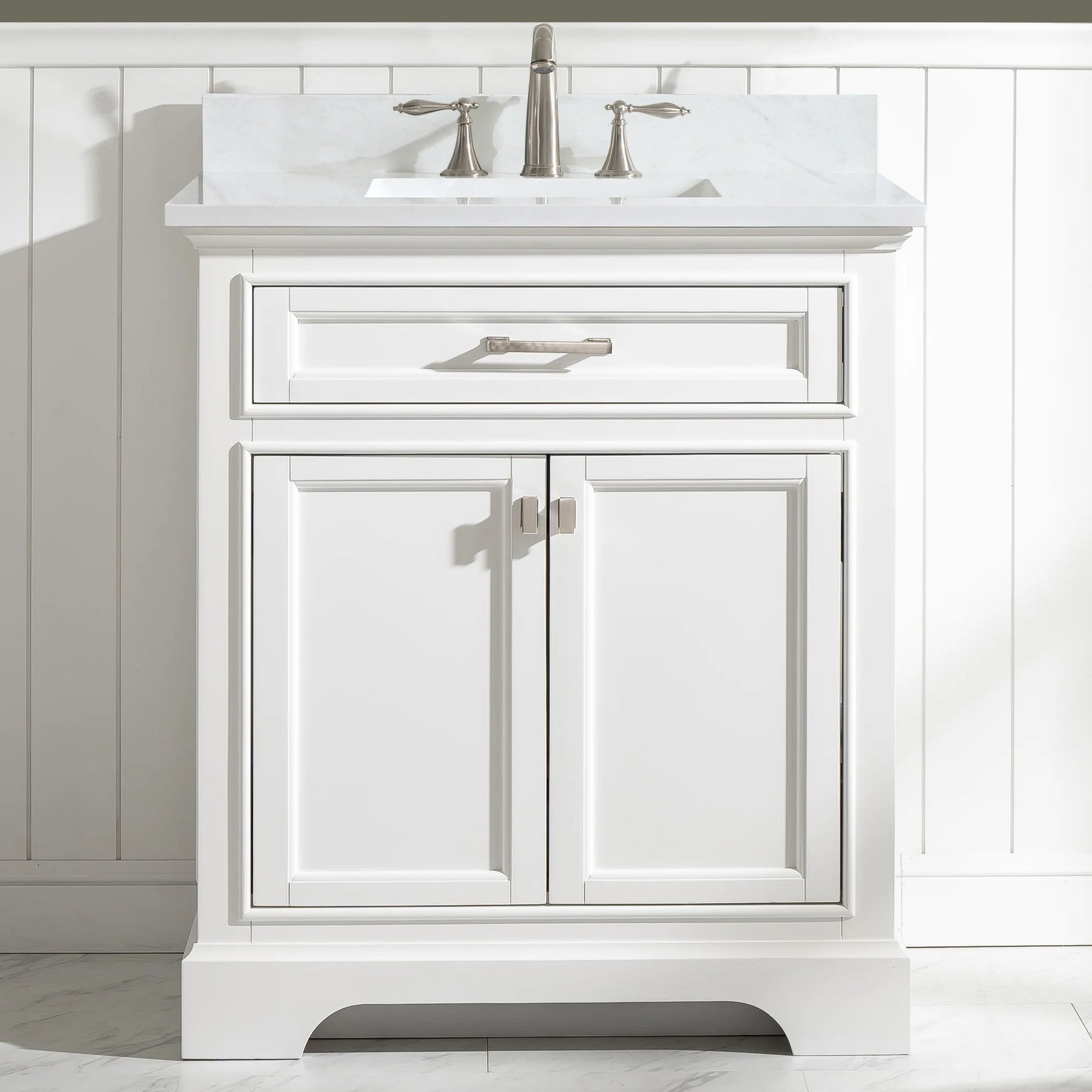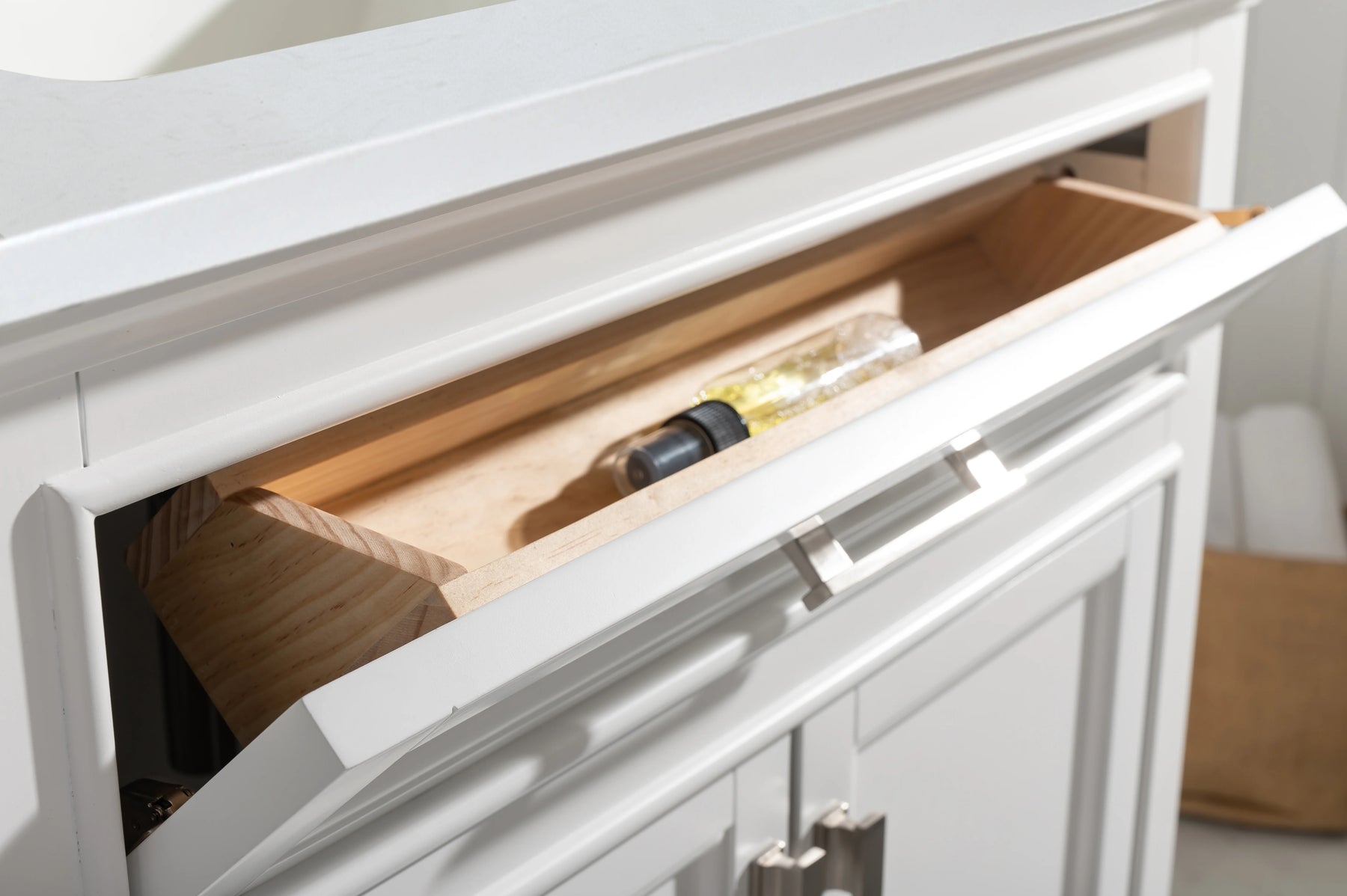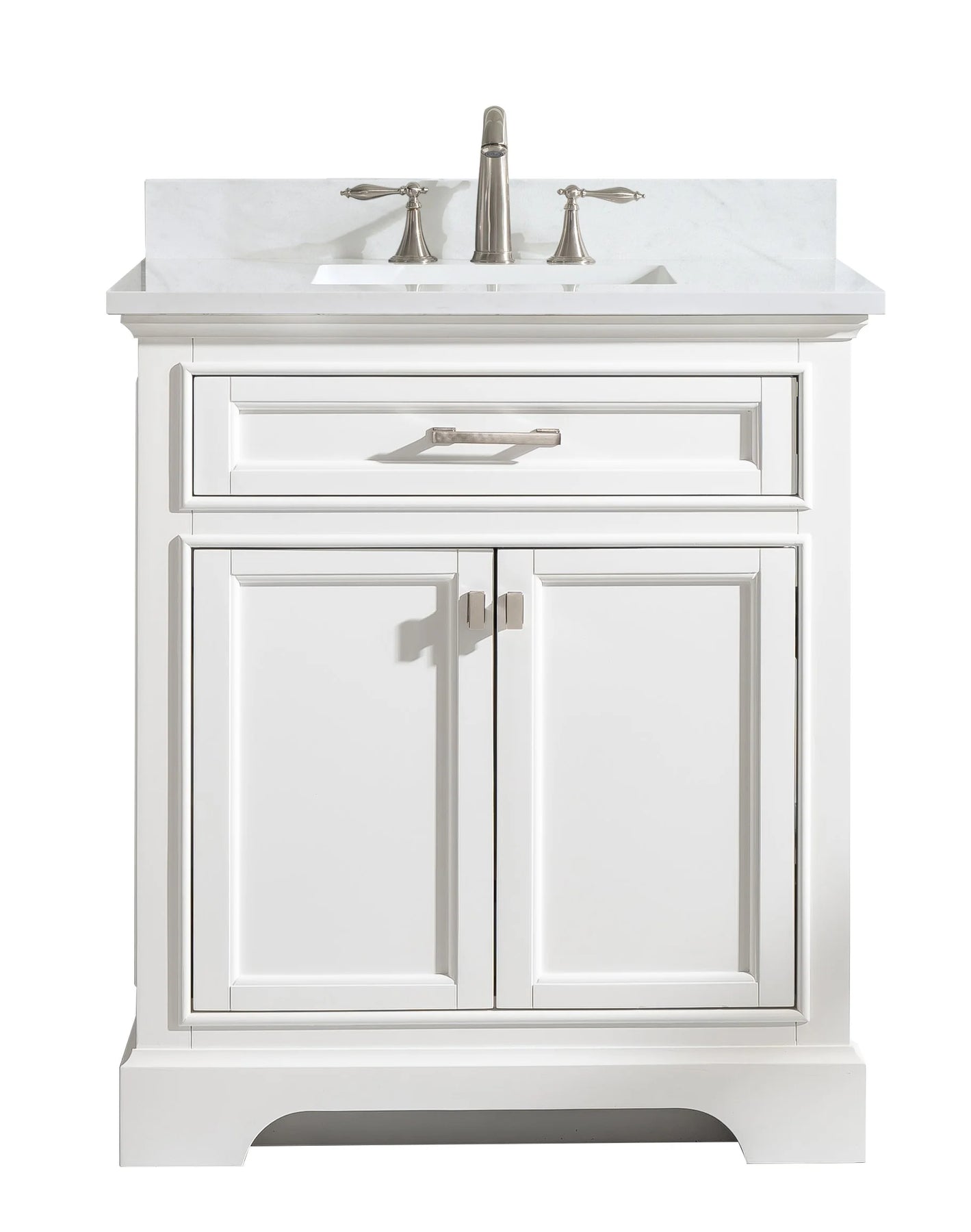 The Milano 30" Single Sink Vanity with White Quartz Top offers a sleek, modern design that transforms any bathroom into a stylish retreat. Featuring a high-quality white quartz countertop, this vanity provides a smooth, easy-to-clean surface that’s resistant to stains and scratches. The compact 30" size is ideal for smaller bathrooms or powder rooms, while the spacious cabinet offers ample storage to keep your essentials organized. With its clean lines and contemporary look, the Milano Vanity adds both elegance and functionality to your space, making it the perfect choice for bathroom renovations.