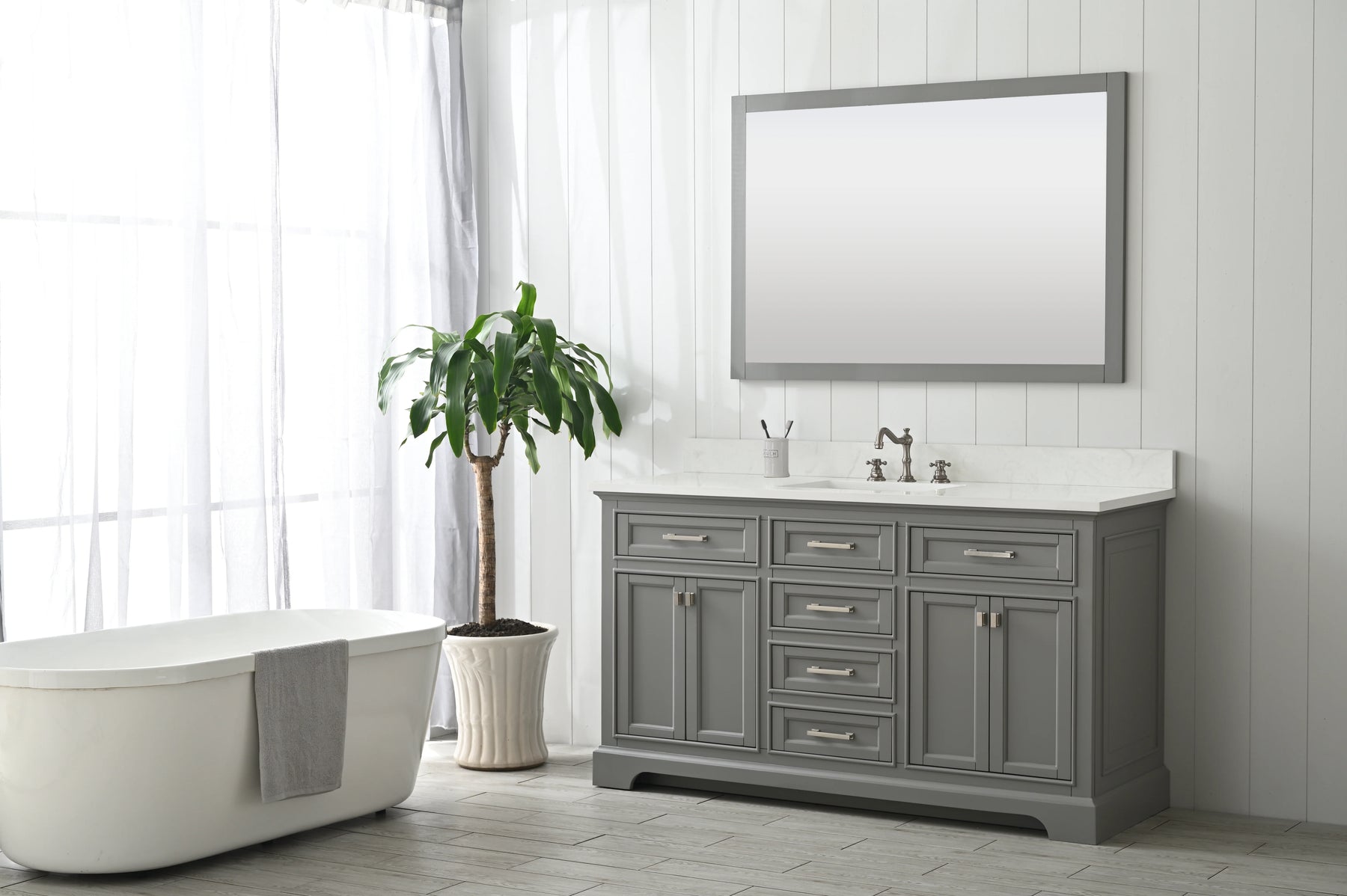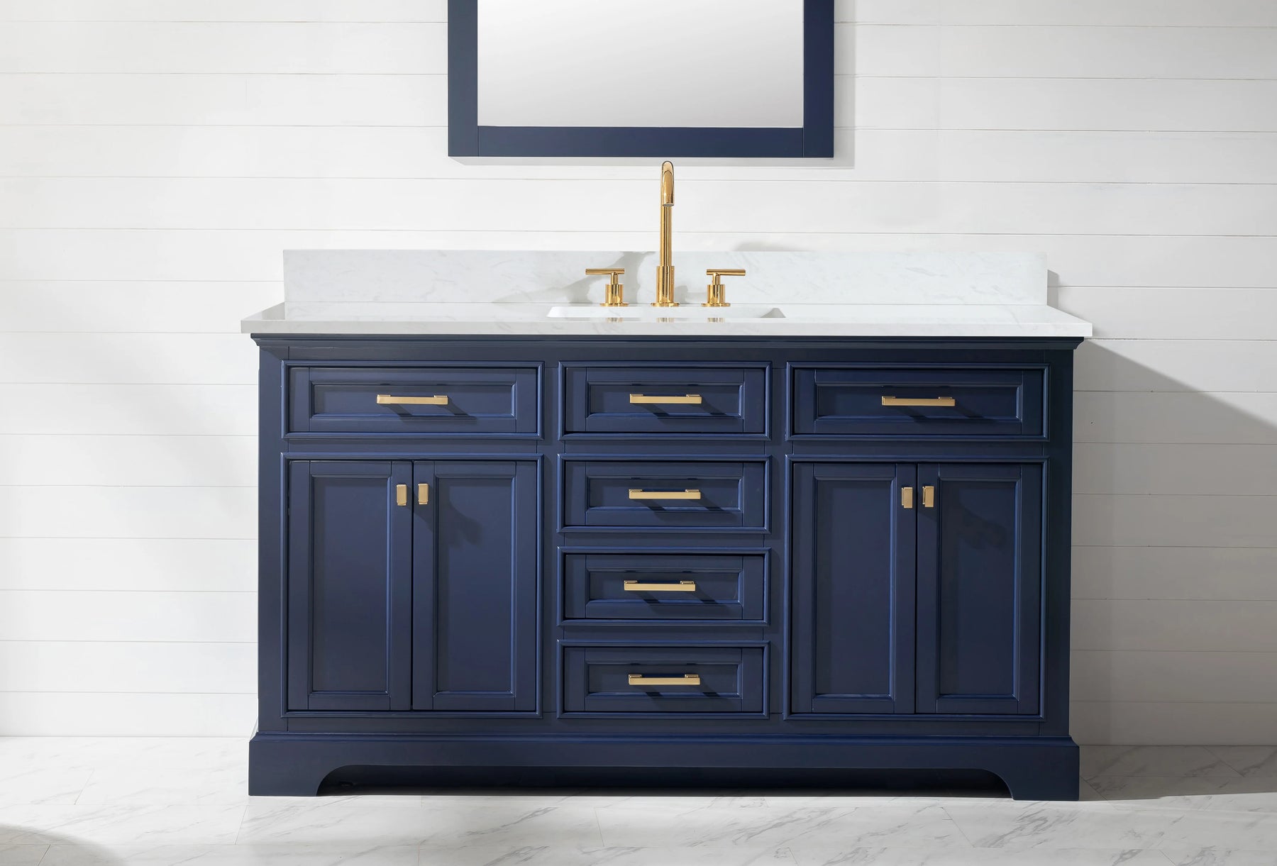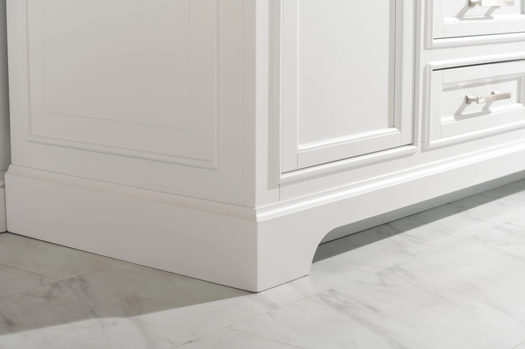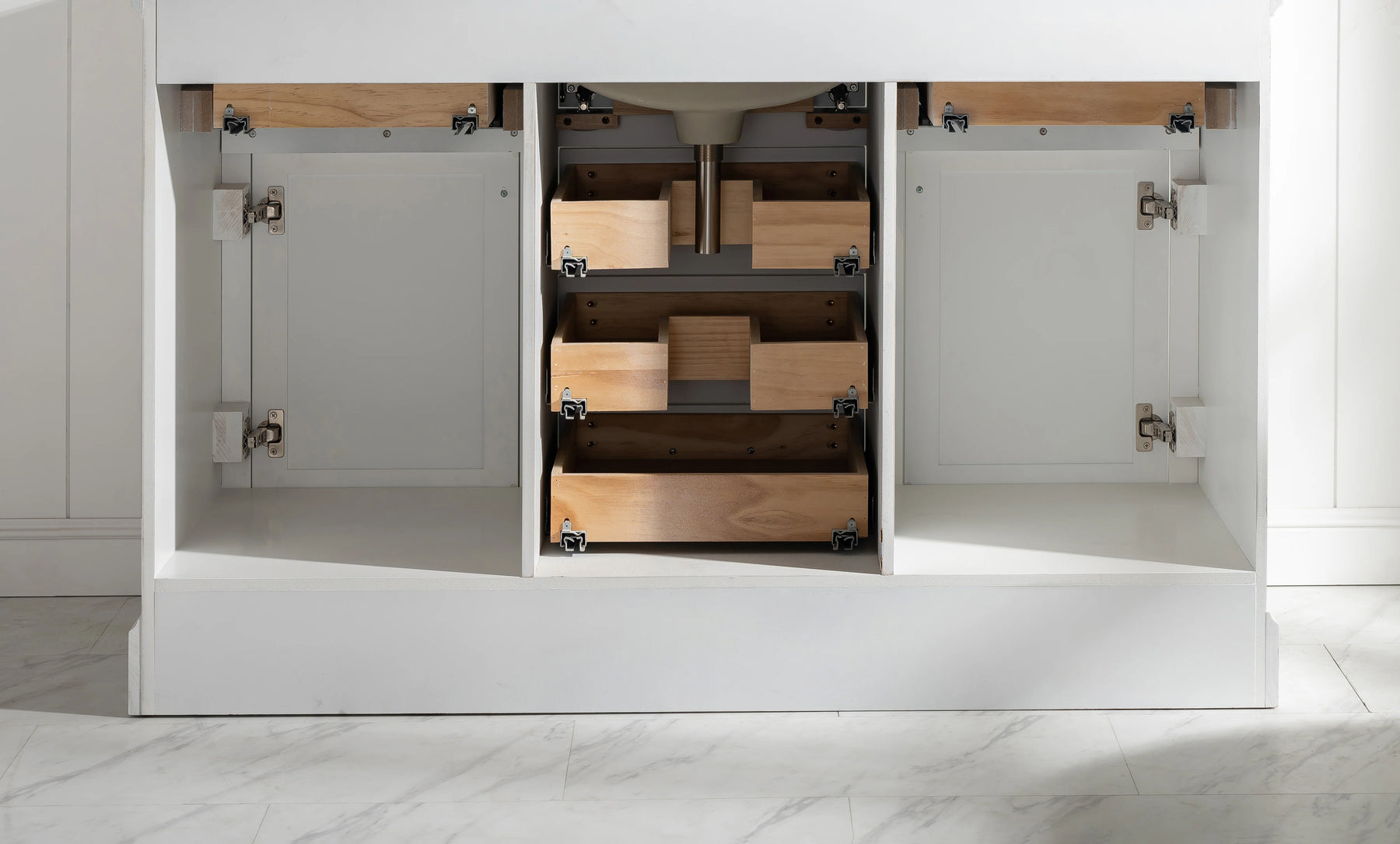 The Milano 60" Single Sink Vanity with White Quartz Top is a stunning addition to any bathroom, offering both style and practicality. With a spacious 60" design, this vanity features a high-quality white quartz countertop that is scratch, stain, and water-resistant, ensuring long-term durability and easy maintenance. The sleek, modern aesthetic is paired with generous storage space, including a large cabinet and drawers to help keep your bathroom essentials organized. Perfect for larger bathrooms or master suites, the Milano Vanity combines timeless elegance with high functionality, making it a must-have for any renovation project.