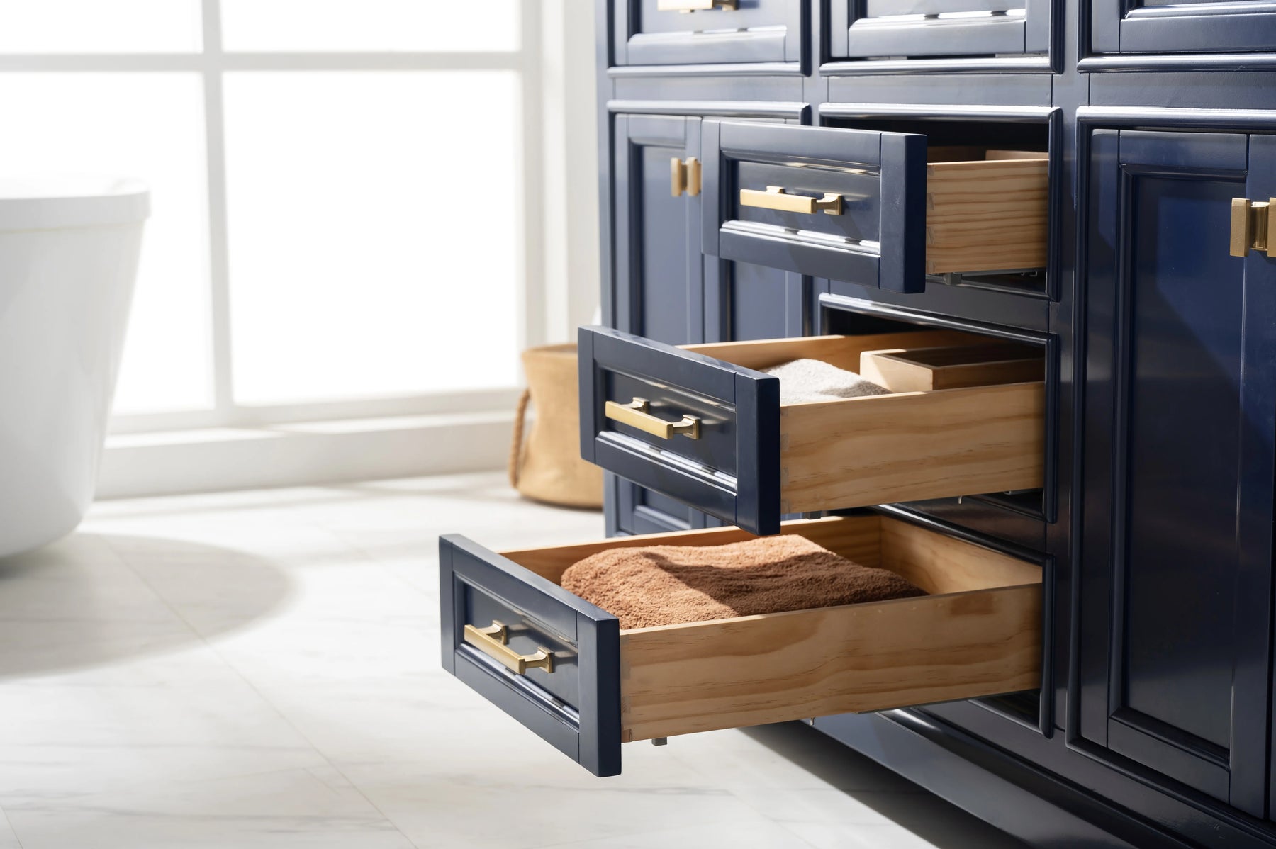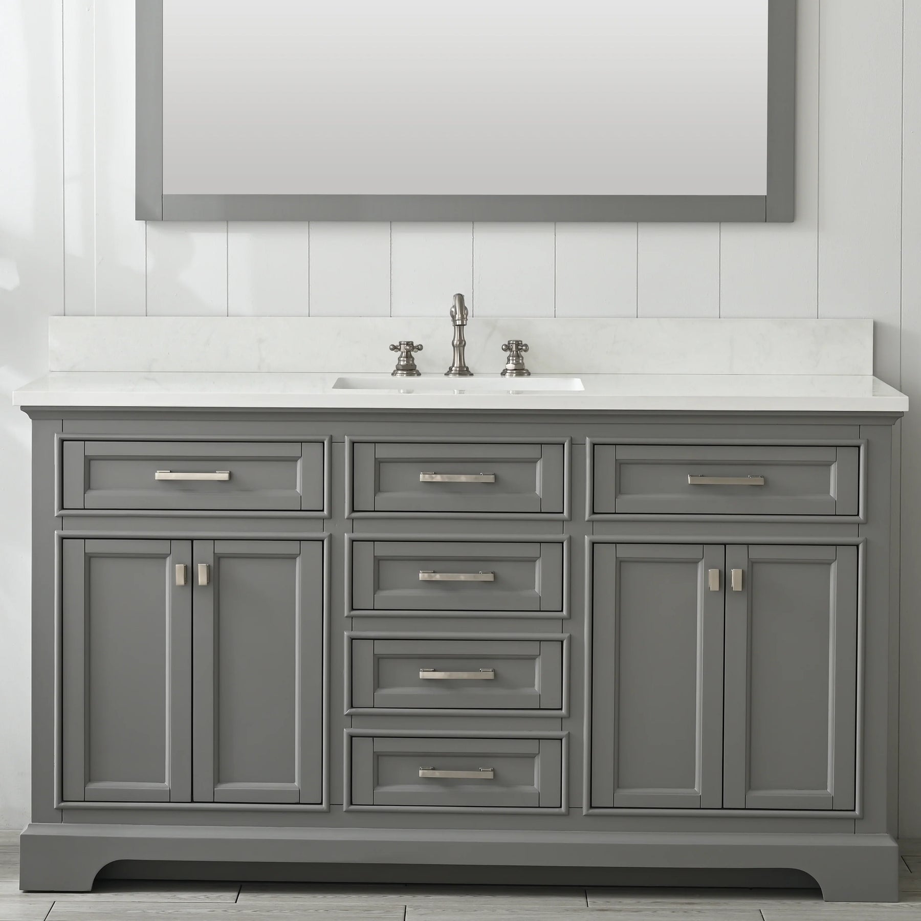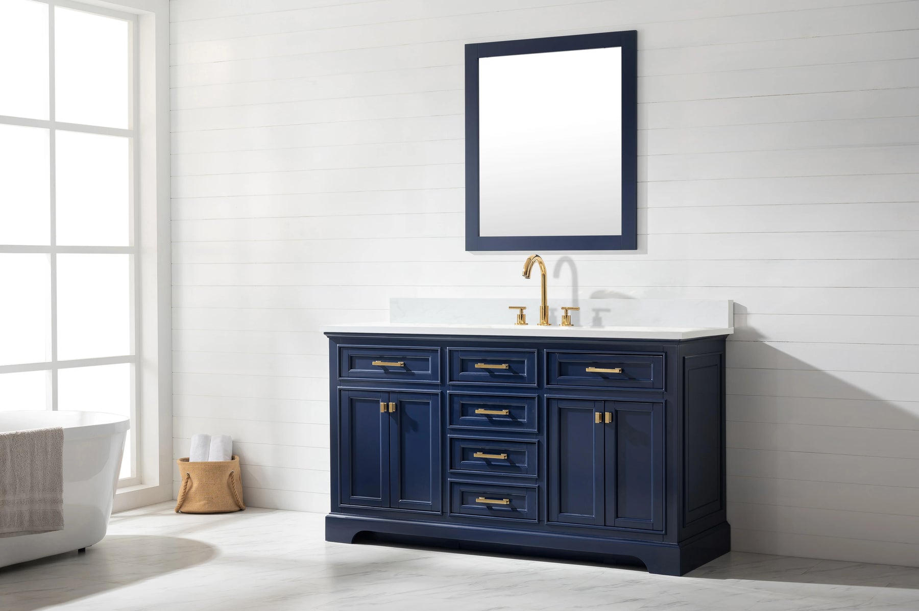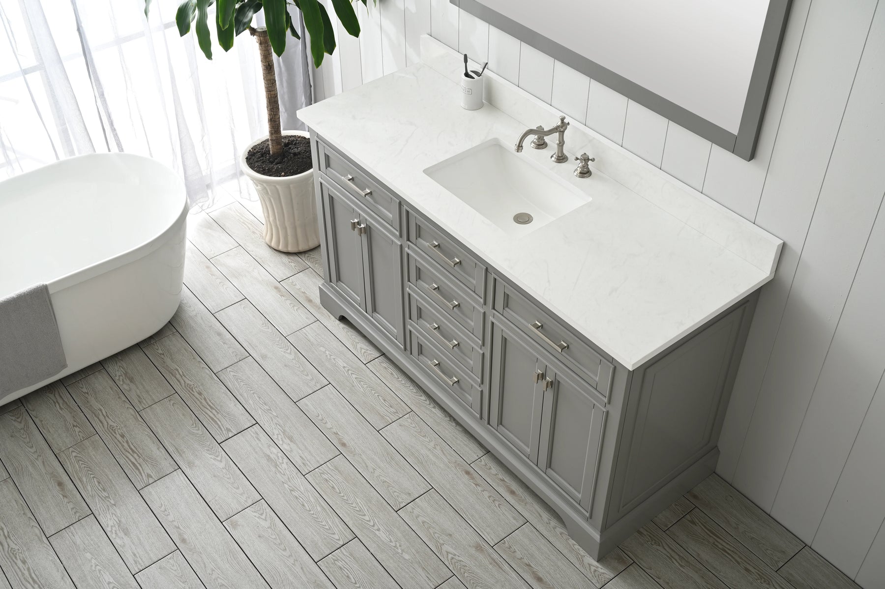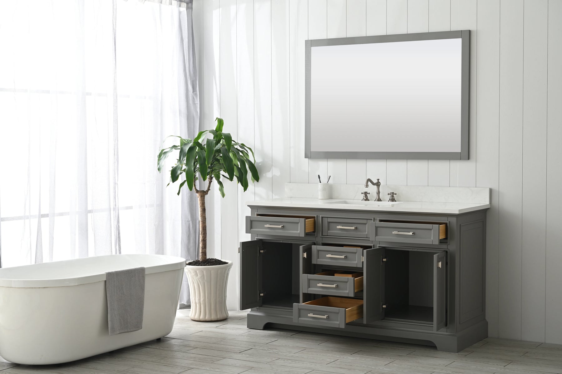 The Milano 60" Single Sink Vanity with White Quartz Top is a stunning addition to any bathroom, offering both style and practicality. With a spacious 60" design, this vanity features a high-quality white quartz countertop that is scratch, stain, and water-resistant, ensuring long-term durability and easy maintenance. The sleek, modern aesthetic is paired with generous storage space, including a large cabinet and drawers to help keep your bathroom essentials organized. Perfect for larger bathrooms or master suites, the Milano Vanity combines timeless elegance with high functionality, making it a must-have for any renovation project.