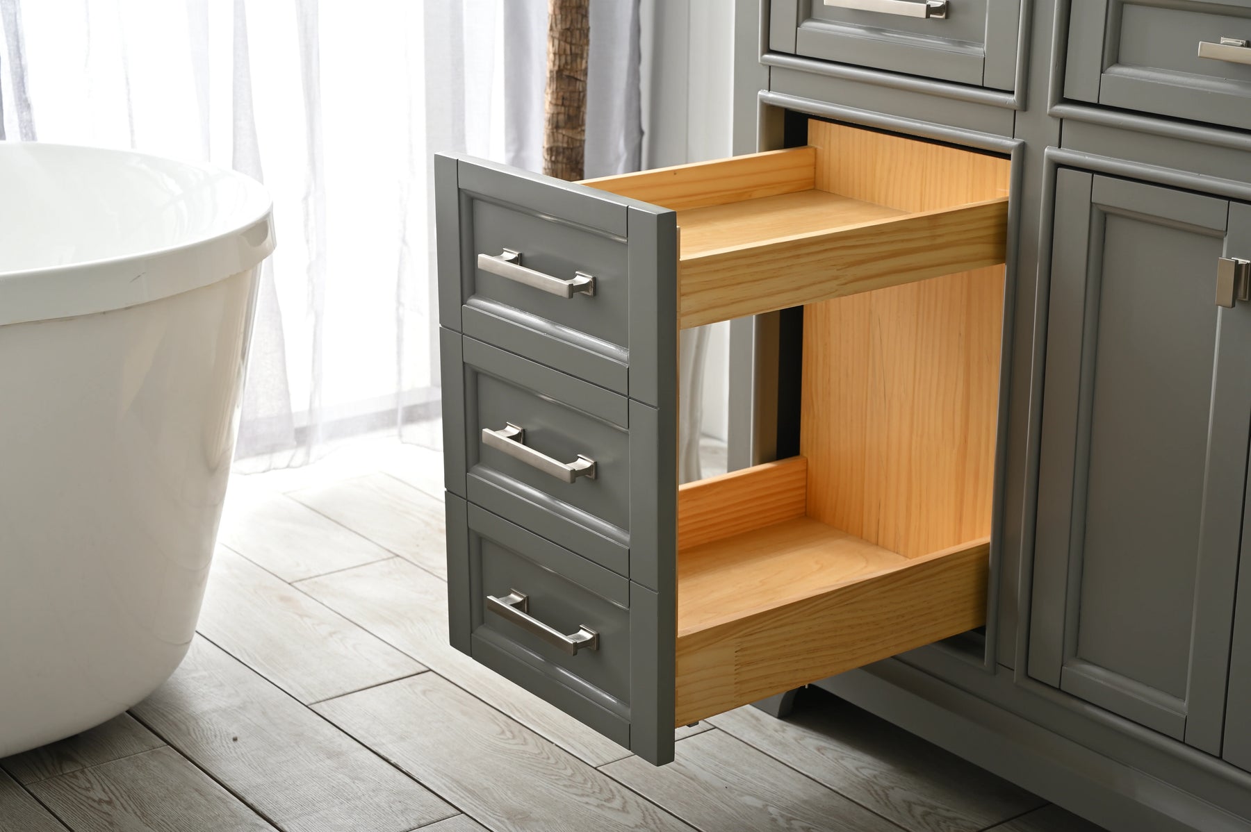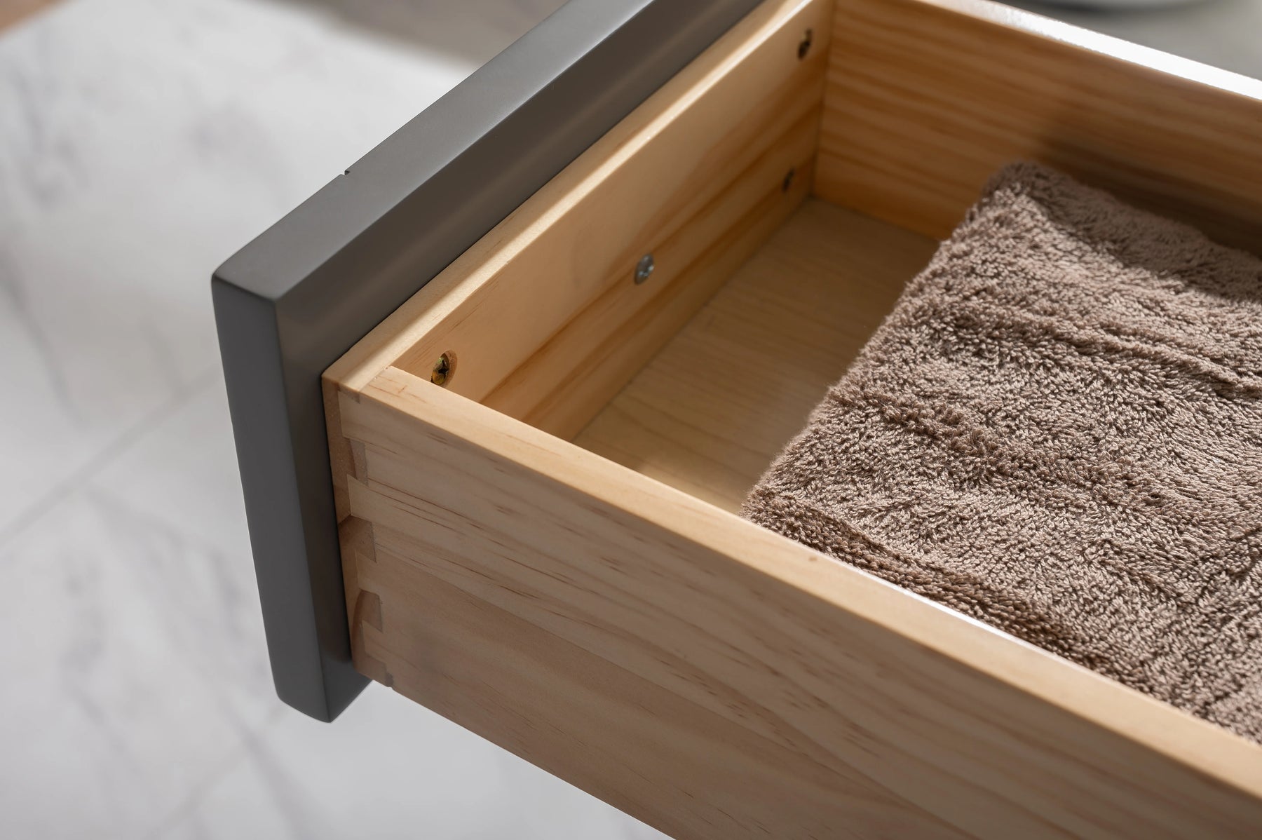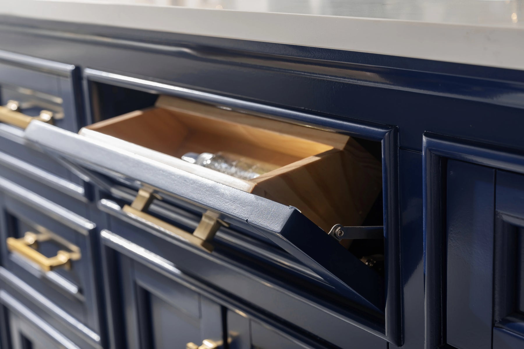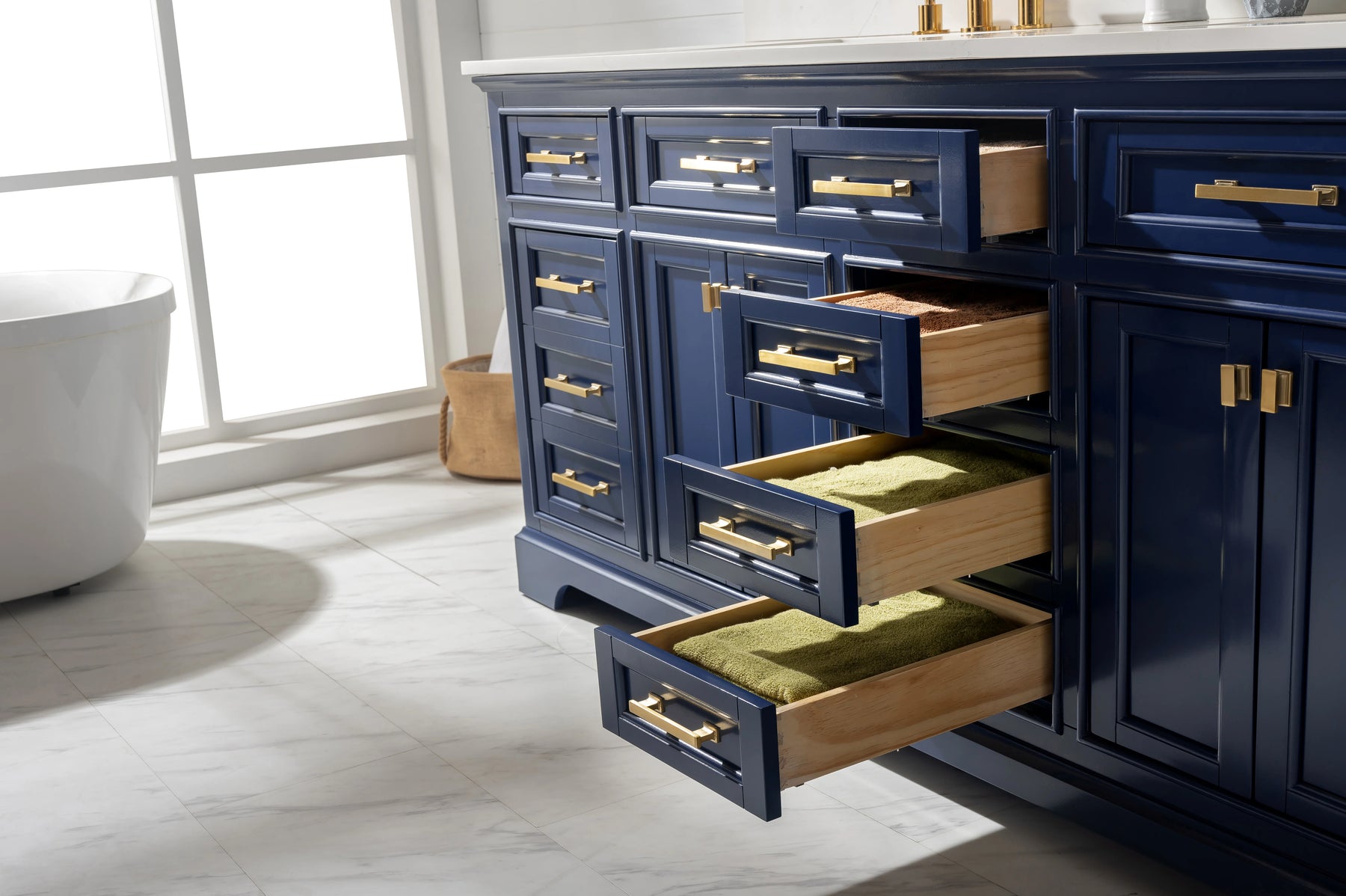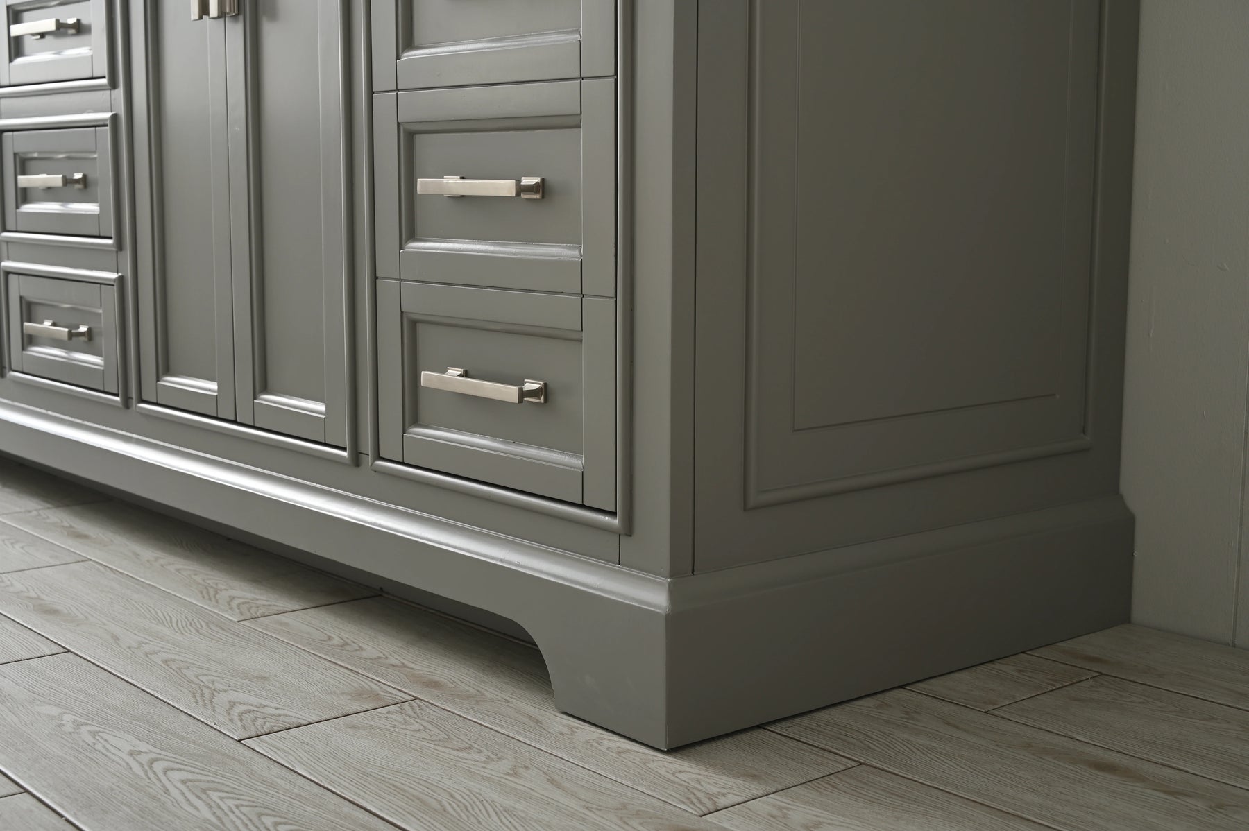 The Milano 84" Double Sink Vanity with White Quartz Top redefines luxury and functionality for expansive master bathrooms. This impressive vanity features a durable, high-quality white quartz countertop that is both elegant and easy to maintain, providing a scratch and stain-resistant surface that stays pristine for years. The double sink design enhances convenience, making it perfect for shared use while preserving ample counter space. With a well-thought-out layout that includes extensive cabinetry and multiple drawers, the Milano Vanity offers generous storage to keep your bathroom organized and clutter-free. This contemporary vanity elevates the aesthetic of any large bathroom with its sophisticated design and superior craftsmanship.