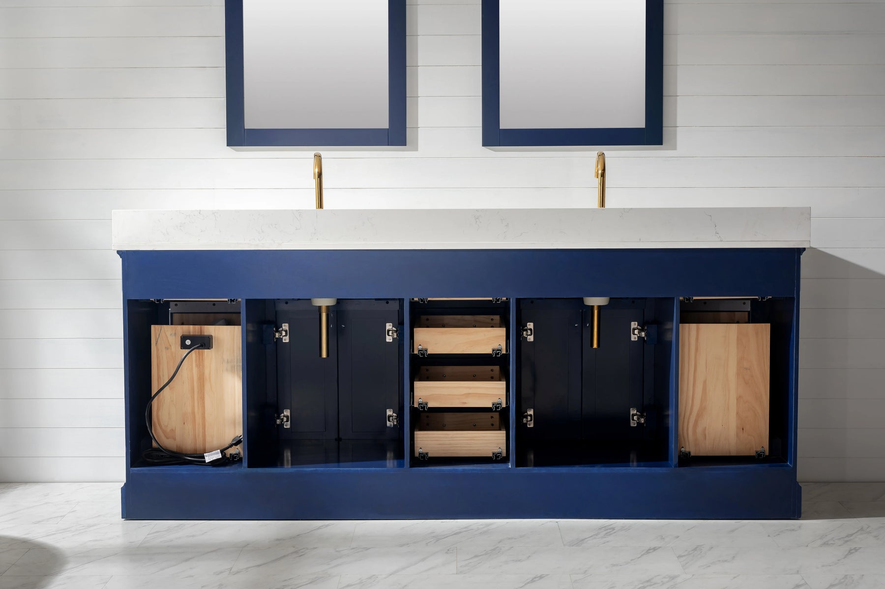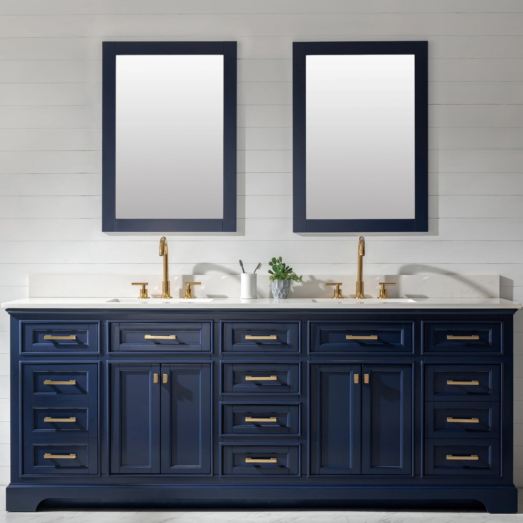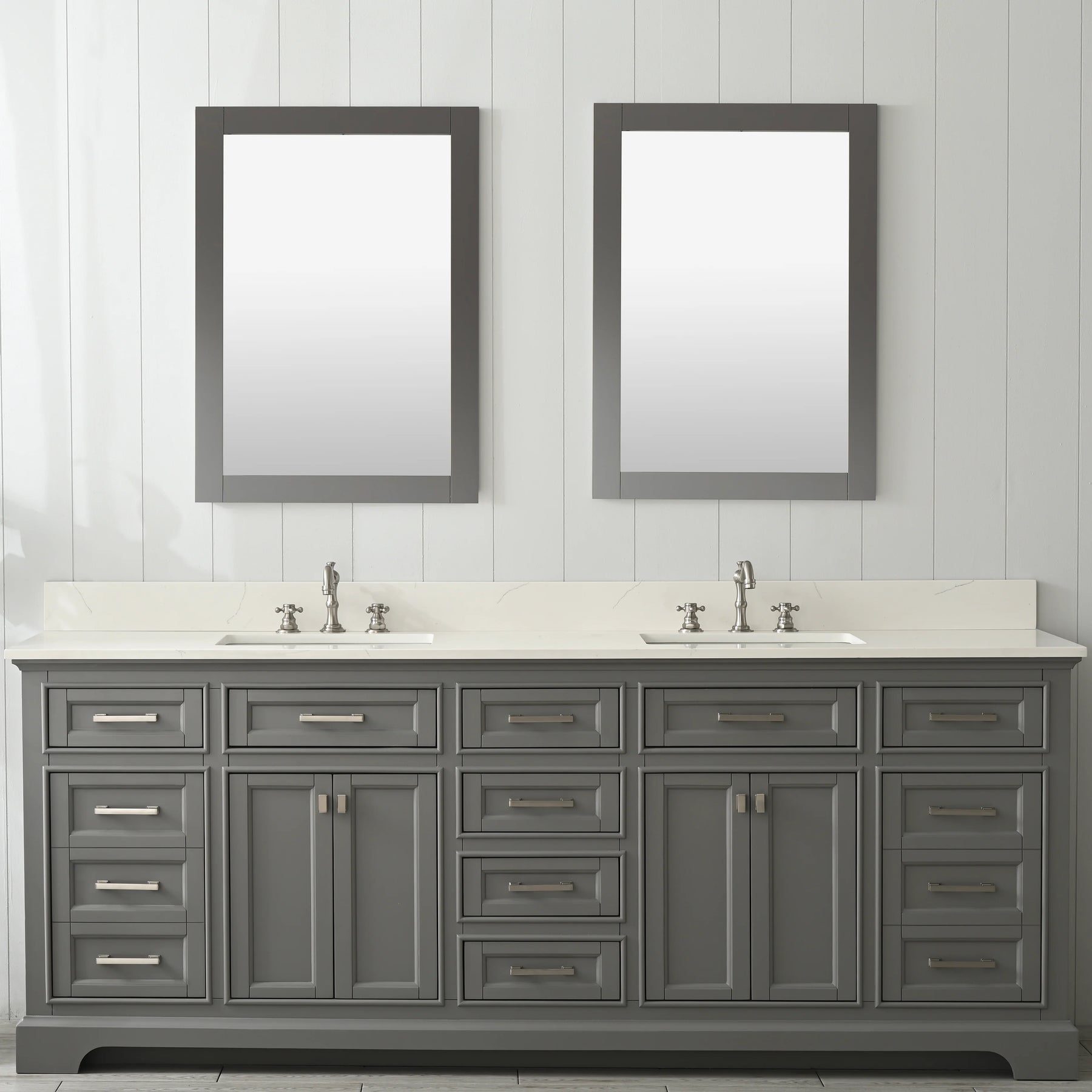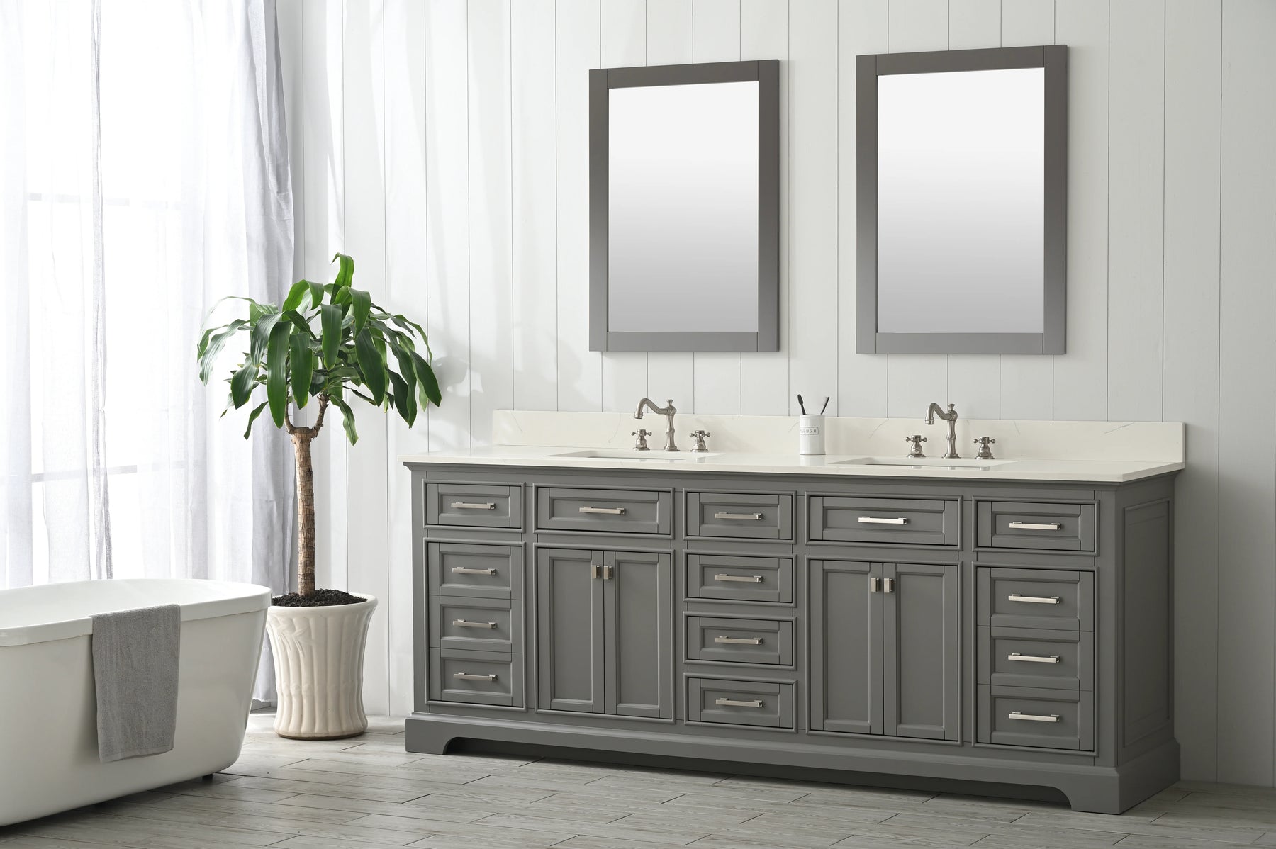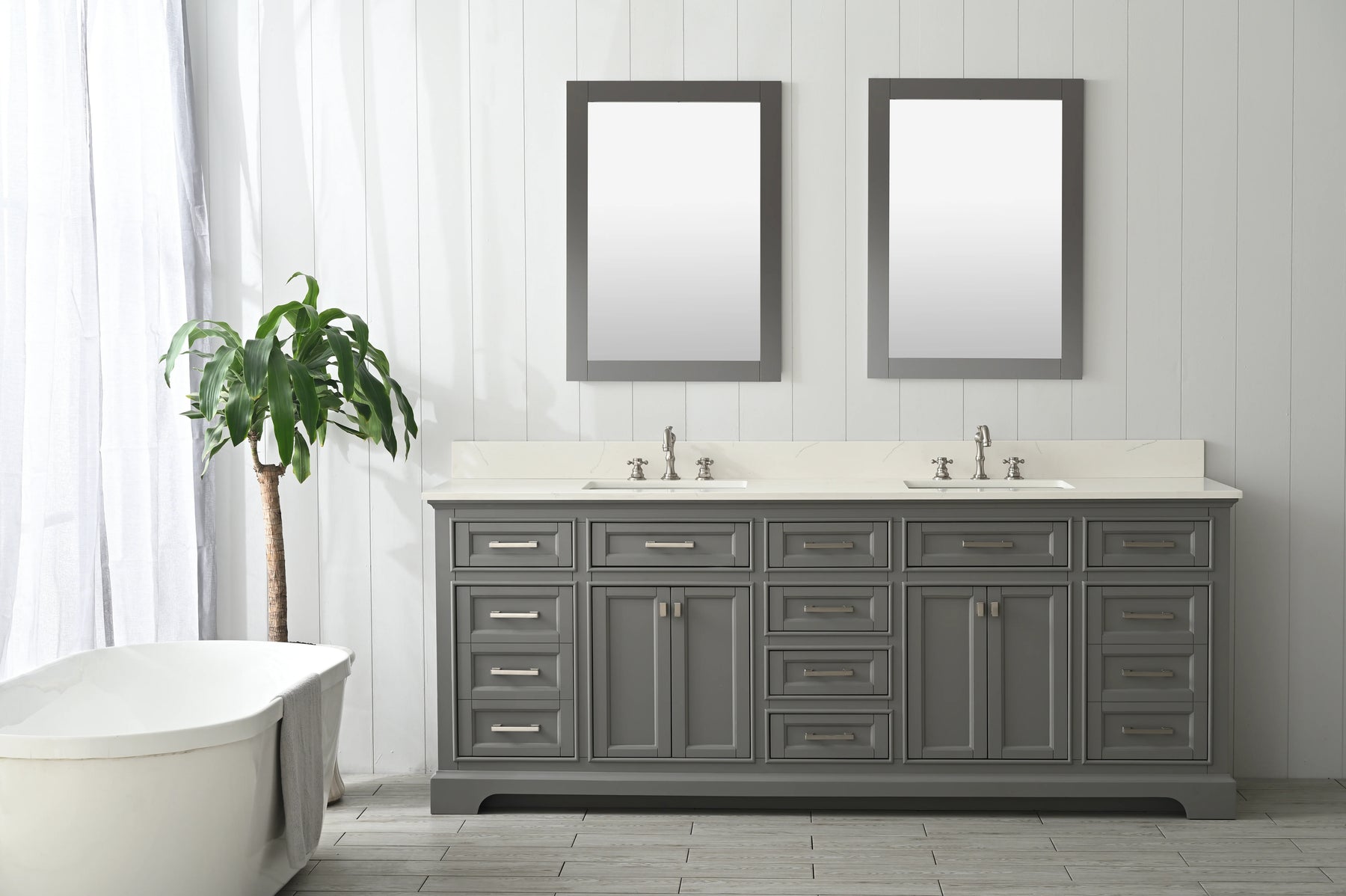 • 84" double sink vanity with a premium, easy-to-clean white quartz top