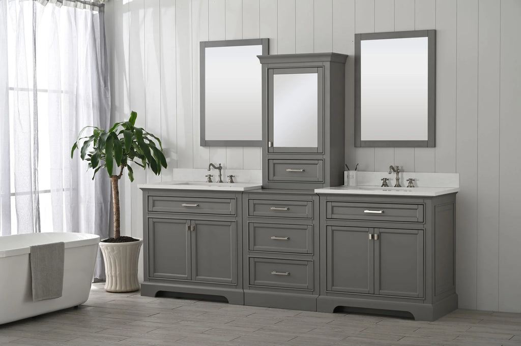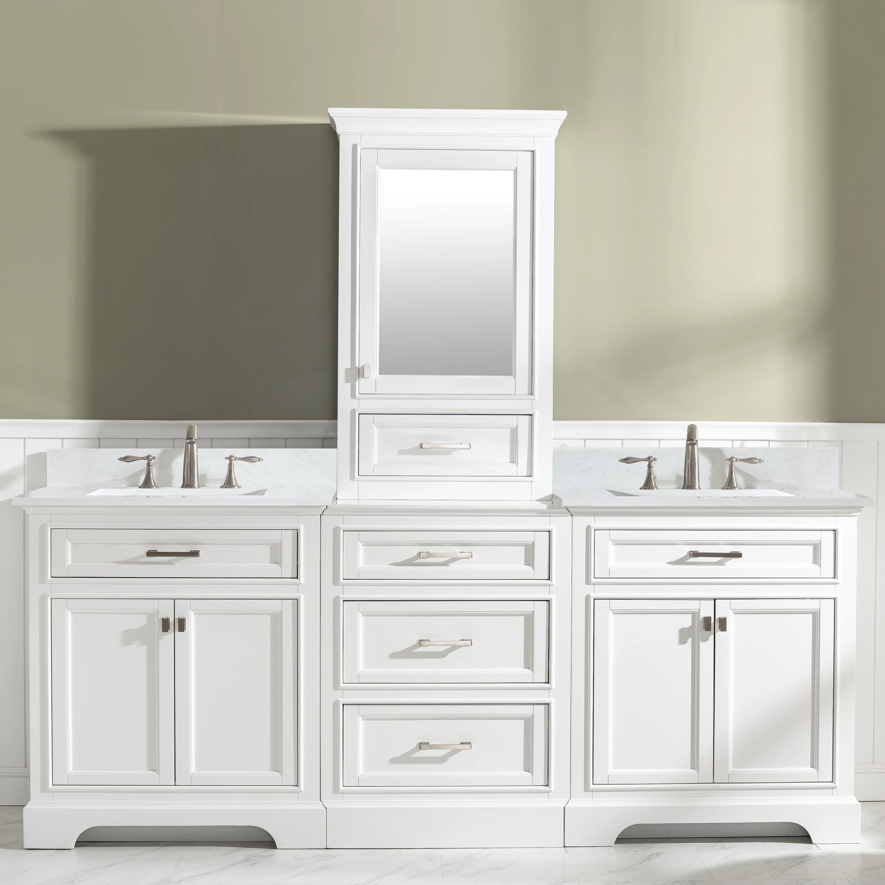 The Milano 84" Modular Double Sink Vanity Set with White Quartz Top is a perfect blend of sophistication and practicality, designed for those who desire a luxurious touch in their bathroom. Spanning 84 inches, this vanity set provides ample counter space with two sinks, making it ideal for master bathrooms or shared spaces. The white quartz top is not only elegant but also highly durable, stain-resistant, and easy to maintain, ensuring lasting beauty. The modular design allows you to customize the layout to match your specific space and style preferences. With generous storage options including multiple cabinets and drawers, this vanity set ensures your bathroom essentials are organized and accessible. The Milano vanity's sleek and modern design complements various decor styles, bringing a high-end look to your space.