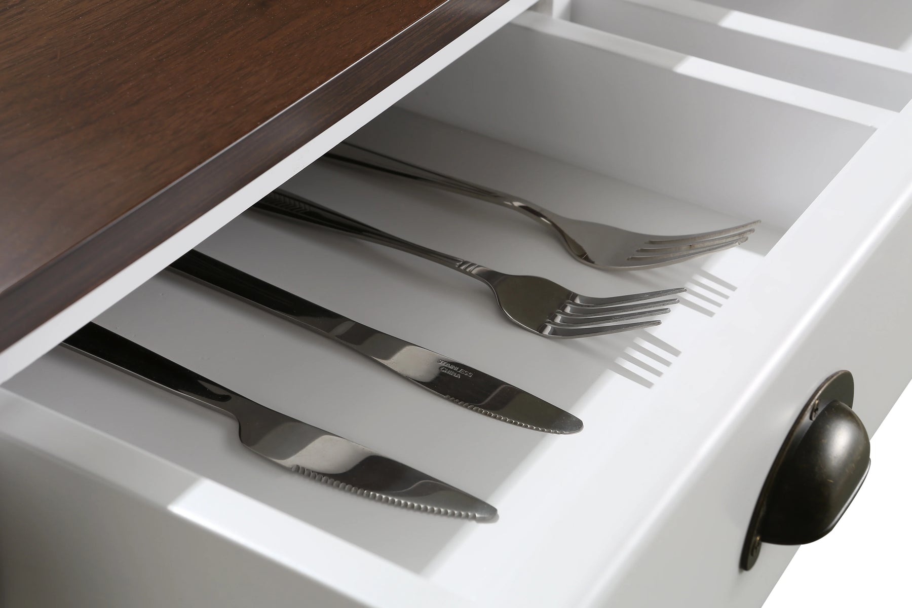 Add a touch of sophistication and functionality to your kitchen with the Monterey 36" Kitchen Island, featuring a beautiful dark walnut veneered wood countertop set against a sleek white base. This stylish island offers both aesthetic appeal and practical utility, providing a durable and spacious surface for meal preparation, serving, or casual dining. The white base is designed to complement a wide variety of kitchen styles, while the rich dark walnut countertop adds warmth and elegance. Perfect for enhancing small or large kitchens, this island is equipped with ample storage space to keep your kitchen essentials organized.