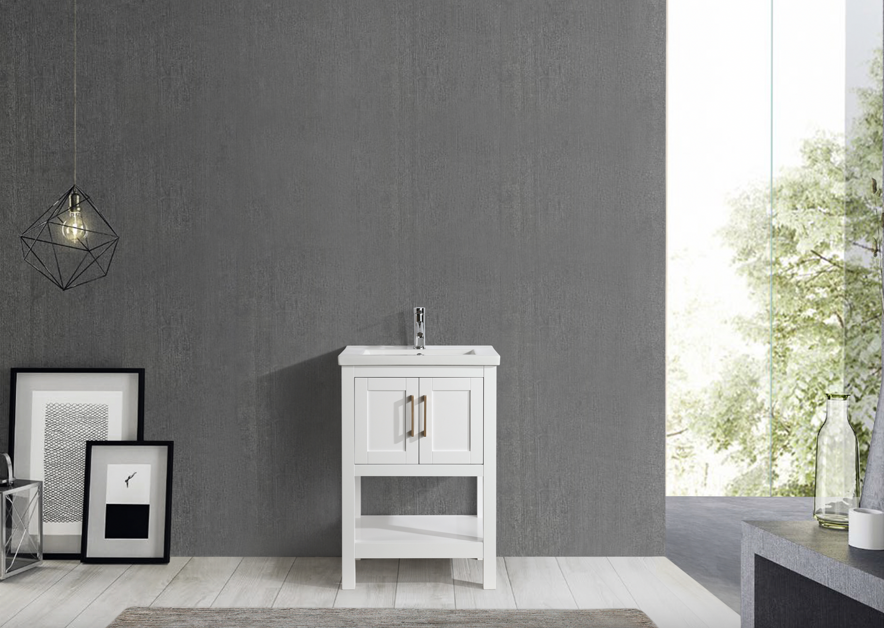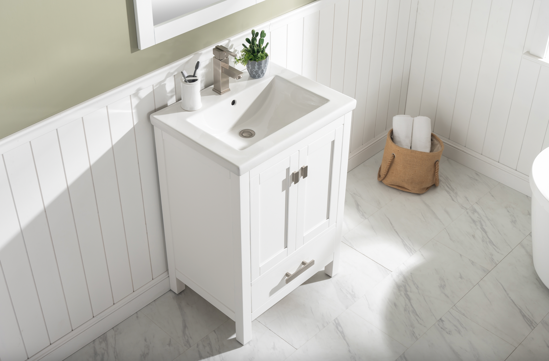 The Valentino 24" Single Vanity with Porcelain Top is the perfect blend of style and practicality, designed to elevate your bathroom with its elegant yet compact design. Featuring a durable and easy-to-maintain porcelain top, this vanity offers a smooth surface that resists stains and is simple to clean. The 24" size is ideal for smaller spaces, such as powder rooms or apartments, providing enough counter space for essentials without overwhelming the room. Beneath the sink, the built-in cabinet provides valuable storage, keeping your bathroom organized and clutter-free. With its timeless design, the Valentino Vanity seamlessly complements a variety of bathroom decors.
