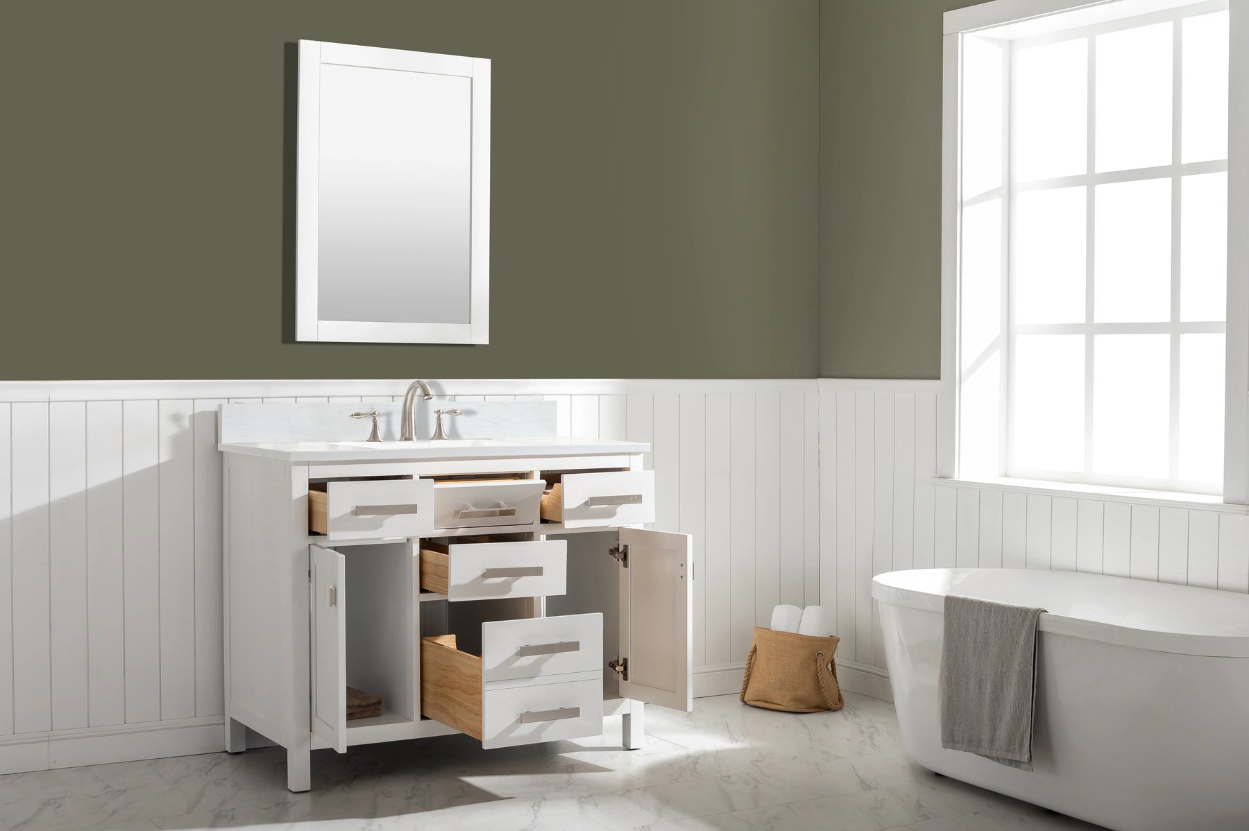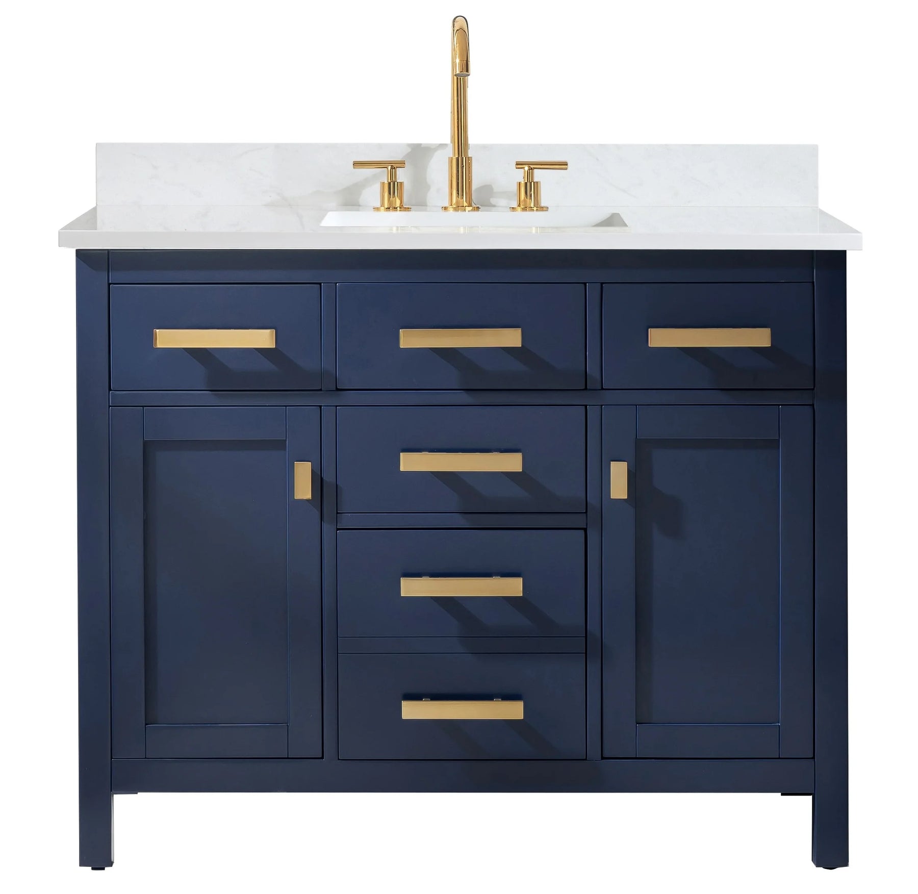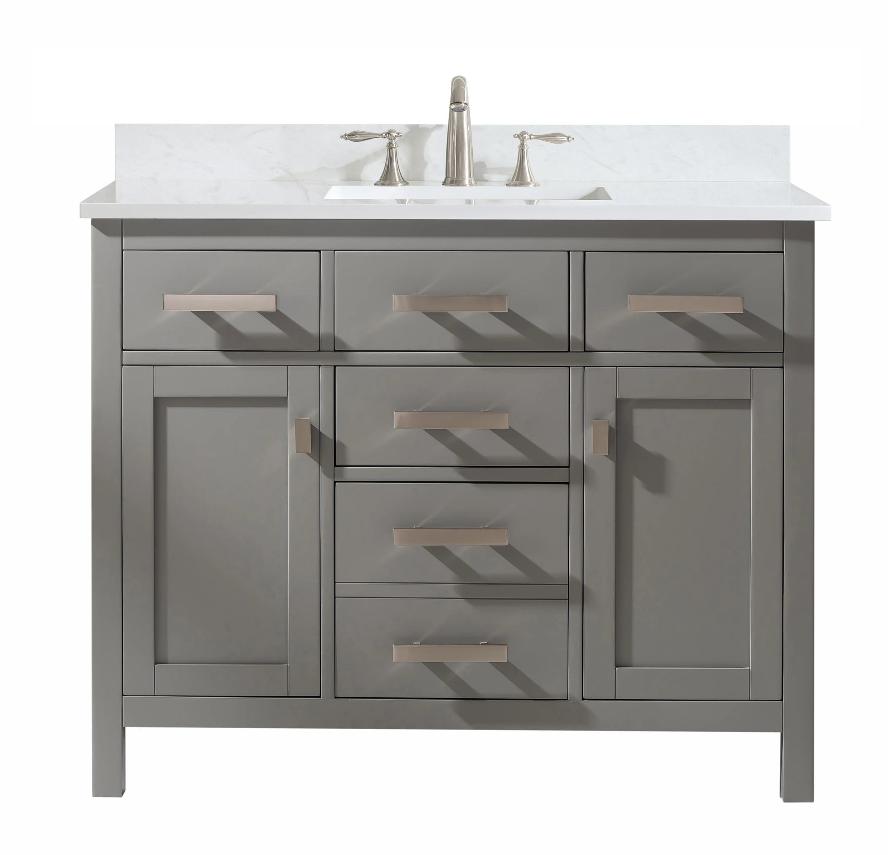 The Valentino 42" Single Sink Vanity with White Quartz Top is the perfect blend of luxury and practicality, designed to elevate the look and functionality of your bathroom. The vanity features a sleek white quartz top, known for its durability, stain resistance, and smooth, elegant finish. At 42 inches, this vanity provides ample counter space for your daily bathroom essentials, while the built-in cabinet offers generous storage to keep your space organized. The modern design complements both contemporary and classic bathroom styles, making the Valentino Vanity a timeless addition to your home.