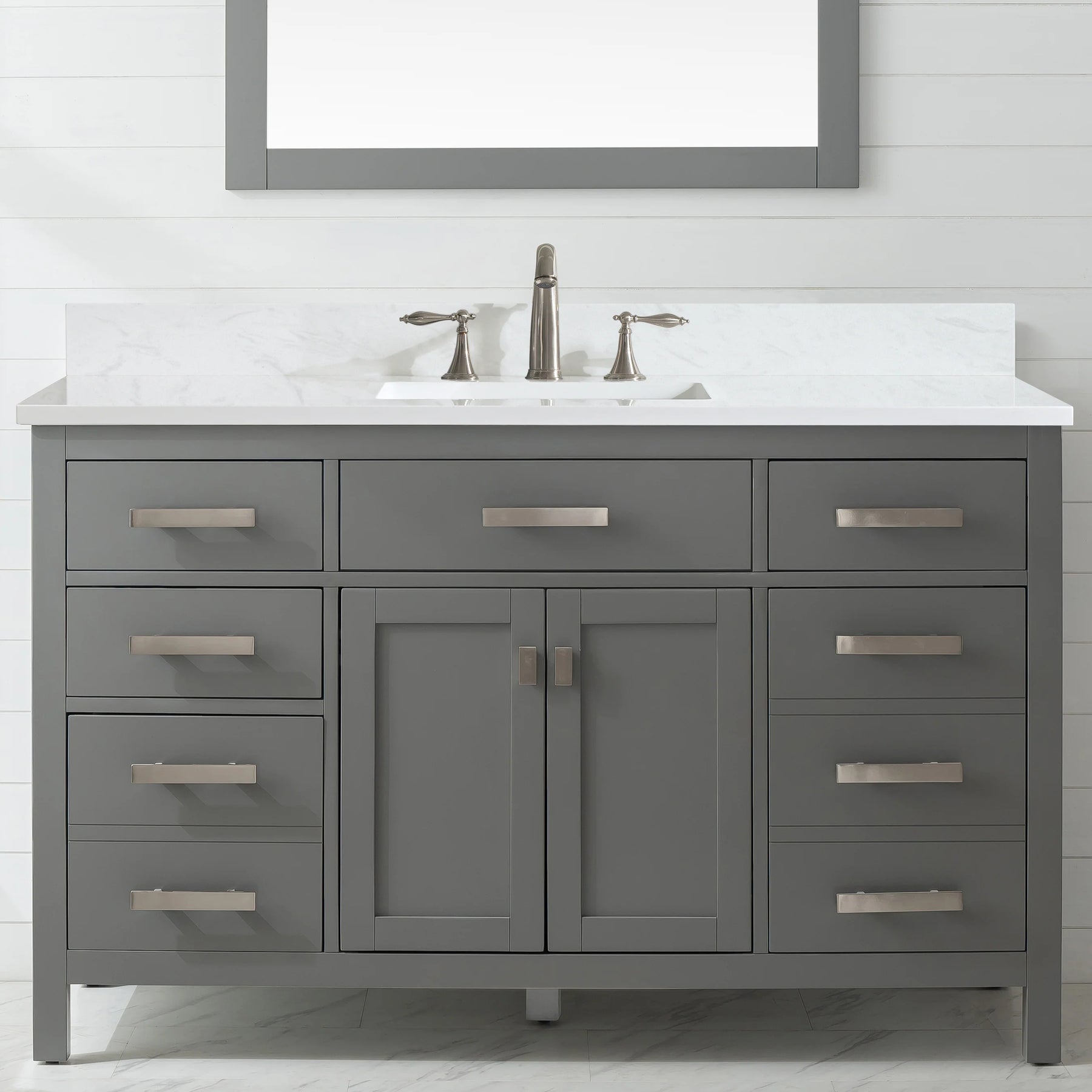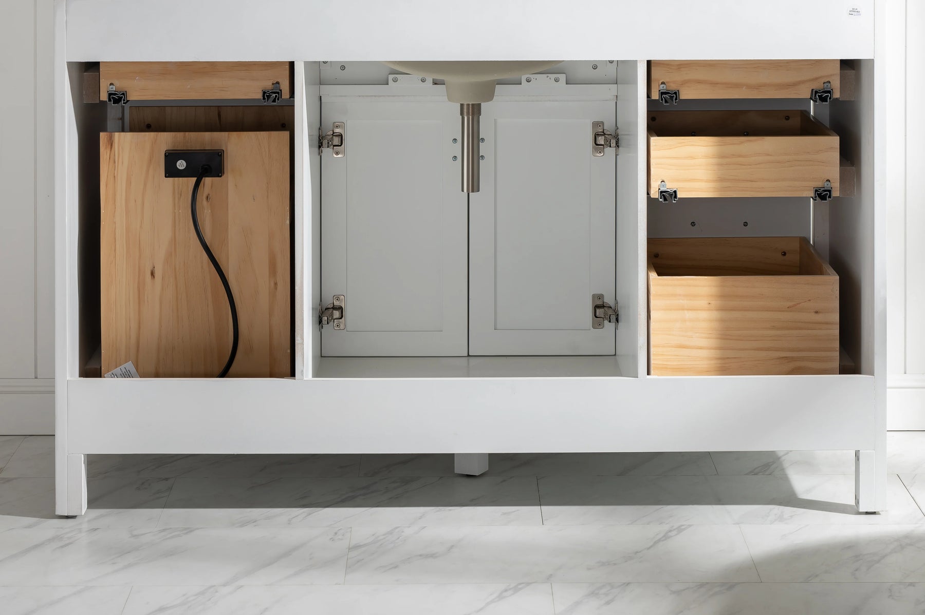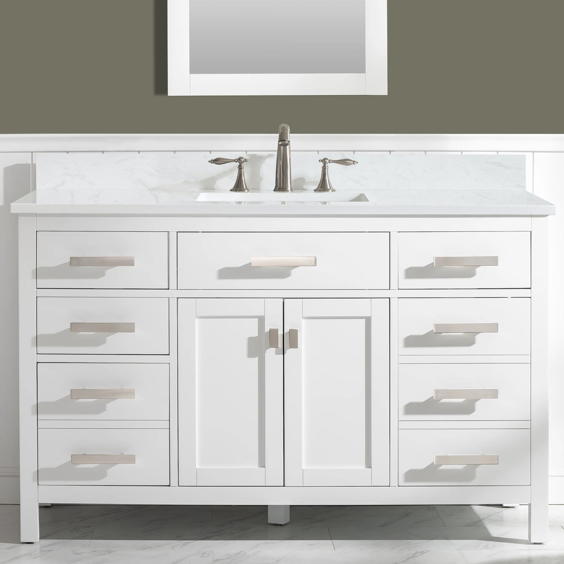 The Valentino 54" Single Sink Vanity with White Quartz Top is a striking addition to any bathroom, offering a perfect blend of luxury and functionality. This spacious vanity features a stunning white quartz top, providing a sleek and durable surface that is resistant to stains and scratches. At 54 inches, it provides ample counter space for all your bathroom essentials, while the large cabinet offers generous storage to keep your bathroom organized and clutter-free. Whether your style is modern or classic, the Valentino Vanity's elegant design and high-quality craftsmanship will enhance your bathroom's aesthetic for years to come.