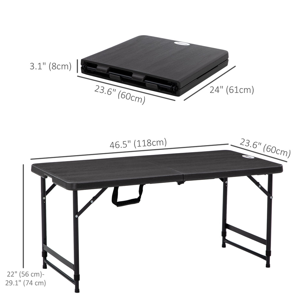 The Outsunny Adjustable Height Folding Patio Dining Table is a versatile and practical addition to any outdoor setting. Designed with convenience in mind, this rectangular table seats up to four people, making it ideal for backyard dinners, outdoor parties, or casual get-togethers. Its dual adjustable height settings—22" and 29.1"—allow you to accommodate both seated and standing guests with ease. The table folds down flat for compact storage and features a built-in handle for portability. Crafted with a durable HDPE tabletop and a powder-coated steel frame, this patio table is resistant to weather, water, and everyday wear, ensuring lasting use throughout the seasons.