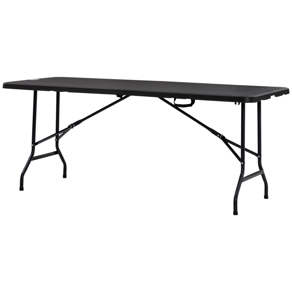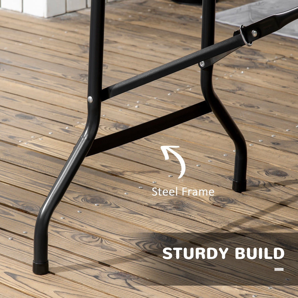 The Outsunny Folding Patio Dining Table for 6 offers the perfect solution for outdoor dining, entertaining, and gatherings with family and friends. Designed to comfortably seat six people, this spacious rectangular table brings both function and style to your backyard, garden, deck, or balcony. The foldable design ensures effortless storage and portability, featuring a side handle for easy transport. Built for durability, the 4 cm thick HDPE tabletop offers a wood-like appearance with superior resistance to water, weather, and wear, while the sturdy steel frame with powder-coated finish provides strong and stable support for long-term outdoor use. Ready to use out of the box—no assembly required.